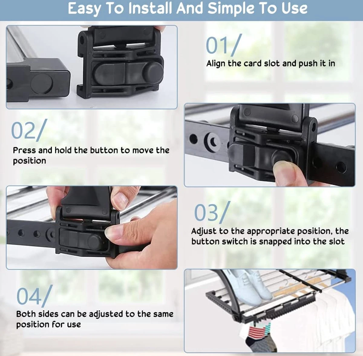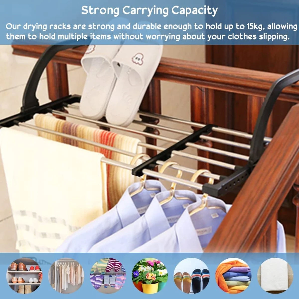 - Matériau de haute qualité, capacité portante élevée: Ce séchoir pour balcon est fabriqué en acier inoxydable et en plastique de haute qualité, résistant à la corrosion, aux hautes températures, solide et difficile à déformer. . Le porte-linge de balcon peut supporter jusqu’à 15 kg et peut contenir divers articles sans que vos vêtements ne glissent.