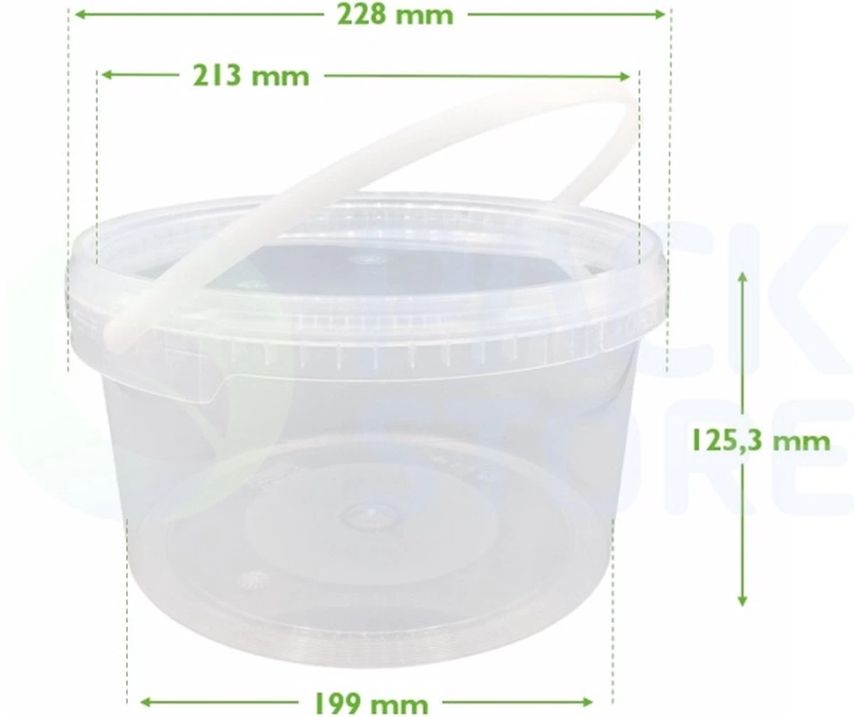 Ces seaux sont idéaux pour emballer et stocker toutes sortes de produits (frais) tels que fruits, légumes, sauces, bonbons, soupes, yaourts, etc. Ces seaux conviennent également parfaitement à l’alimentation animale, à la peinture et à d’autres liquides (non alimentaires).