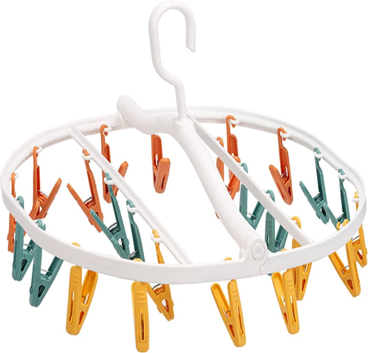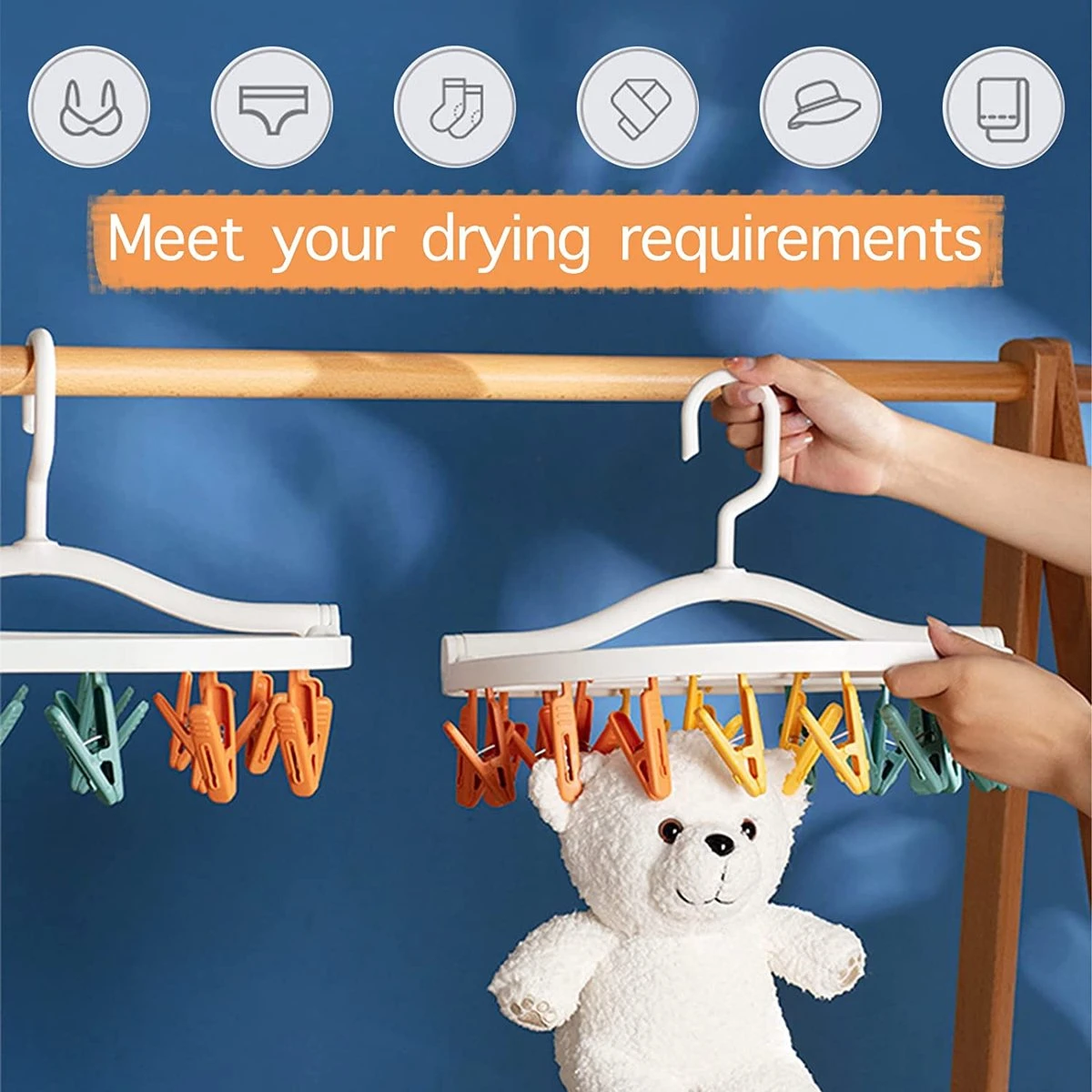 24 Pièces Clips Chaussettes Cintres Étendoir à Linge, Support De Vêtements Portable En Plastique à Suspendre Avec Clips Coupe-Vent, Étendoir Pliable Pour Chaussettes, Sous-Vêtements, Vêtements De Bébé Et Chapeaux
