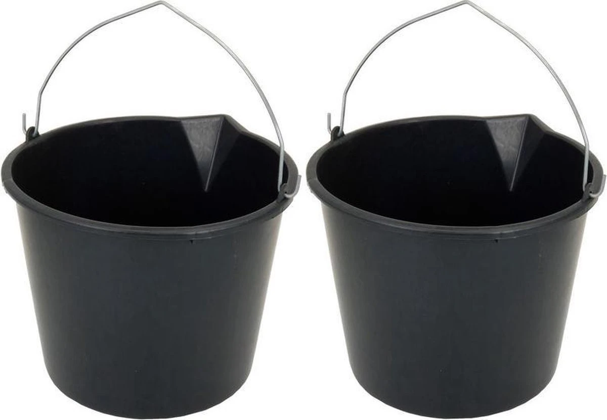 2x Seau Domestique Noir Robuste De 12 Litres Avec Bec Verseur – Produits Ménagers – Seaux Ménagers / Seaux Pratiques / Seaux De Construction / Seaux De Nettoyage