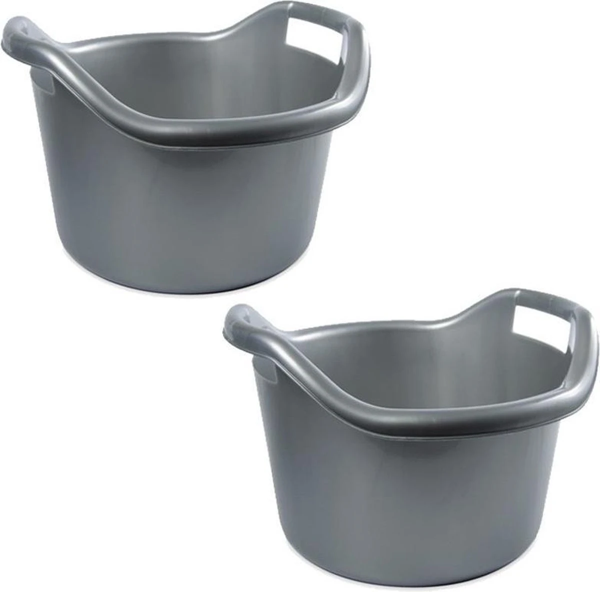2x Seaux De Nettoyage Avec Poignées De Lavage 14 Litres Argent 41 X 24 Cm – Seaux – Seau / évier En Plastique / Plastique Avec Poignées / Poignées