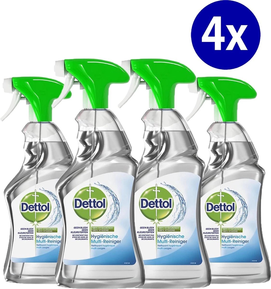 Un paquet contient 4 flacons de spray nettoyant hygiénique Dettol de 500 ml chacun