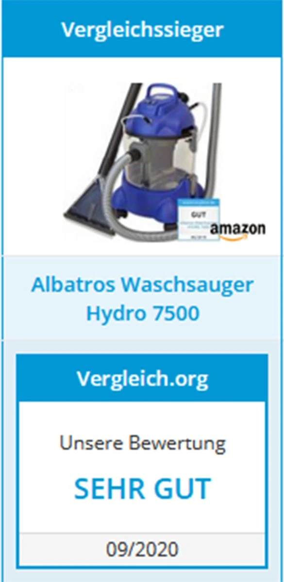 Albatros Nettoyeur De Tapis Lavage Aspirateur Tapisserie + Tapis HYDRO 7500 – 4en1 Aspirateur Eau-sec Voiture, Tapis, Tapisserie – 1200 Watt, Volume 20l, Puissance D’aspiration 16 KPa – Nettoyeur Tapisserie / Nettoyeur Tapis