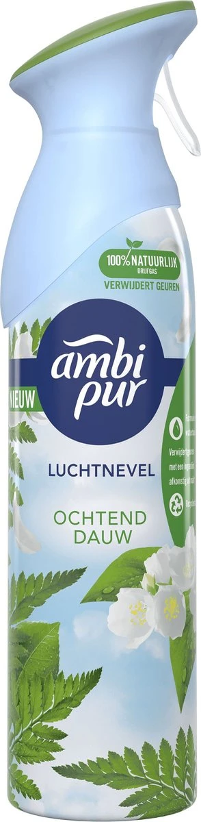 Le désodorisant Ambi Pur avec la technologie OdourClear purifie l’air des odeurs tenaces et laisse un parfum léger et frais. Le parfum Rosée du matin s’inspire de la fraicheur d’une promenade matinale. Revitalisez vos sens avec cette expérience de parfum frais et naturel. Une source d’innovation et de résilience. Contrairement aux autres assainisseurs d’air qui ne masquent que les odeurs, Ambi Pur purifie vraiment l’air des odeurs afin que vous et vos invités puissiez respirer avec le sourire. Les Bombes aérosols Ambi Pur sont ininflammables et contiennent un propulseur 100% naturel. Le Ambi Pur est une bouffée d’air frais qui élimine même les odeurs les plus tenaces et laisse derrière lui un parfum léger et frais qui rend votre maison fraîche et nieuw chaque jour. Essayez la gamme complète de produits Ambi Pur avec la technologie unique OdourClear, y compris le désodorisant textile et automobile Ambi Pur . Essayez également les désodorisants électriques Ambi Pur 3Volution pour l’élimination continue des odeurs jusqu’à 90 jours.