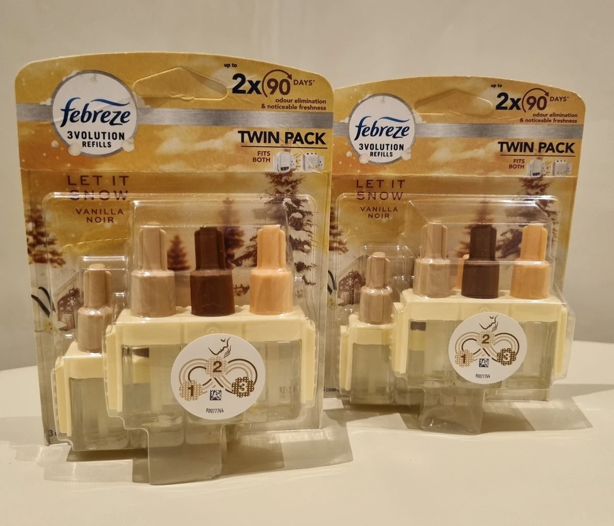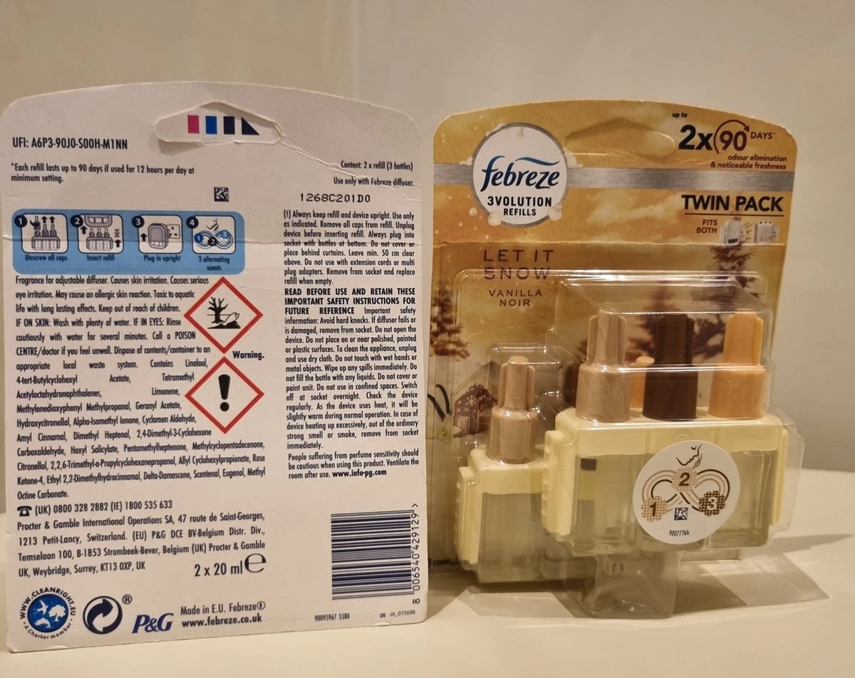 Febreze 3Volution Twin Pack Recharge dans le parfum Let It Snow élimine les odeurs et alterne entre trois parfums Vanilla Noir complémentaires pour une fraîcheur durable. Chaque recharge peut durer jusqu’à 90 jours si elle est utilisée à basse température pendant 12 heures par jour. Découvrez la beauté de la Vanille Noire qui embaumera votre intérieur d’un parfum frais et festif !