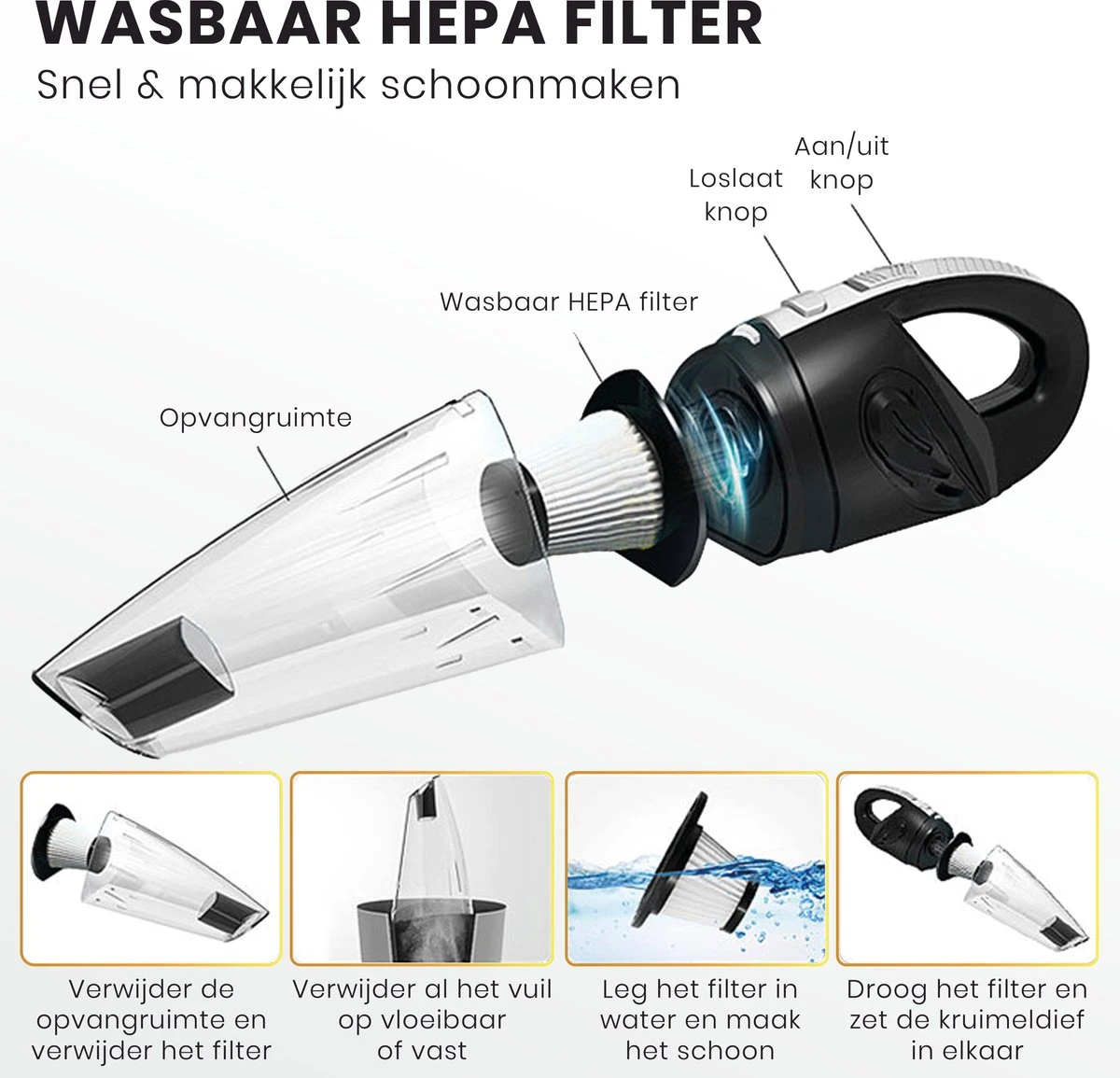 Le filtre de l’aspirateur à main est unFiltre HEPA . C’est l’un des meilleurs filtres du marché. Le filtre est facile à retirer de l’aspirateur à main et peut ensuite être retirénettoyé et réutilisé .