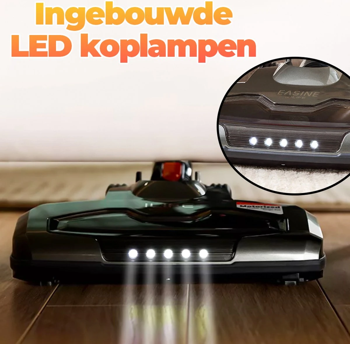 BROSSE À SOL FLEXIBLE – La commande pivotante et la tête à profil bas vous permettent de nettoyer les coins et les endroits difficiles d’accès sous n’importe quel angle. La poussière n’a nulle part où se cacher grâce aux projecteurs à LED.