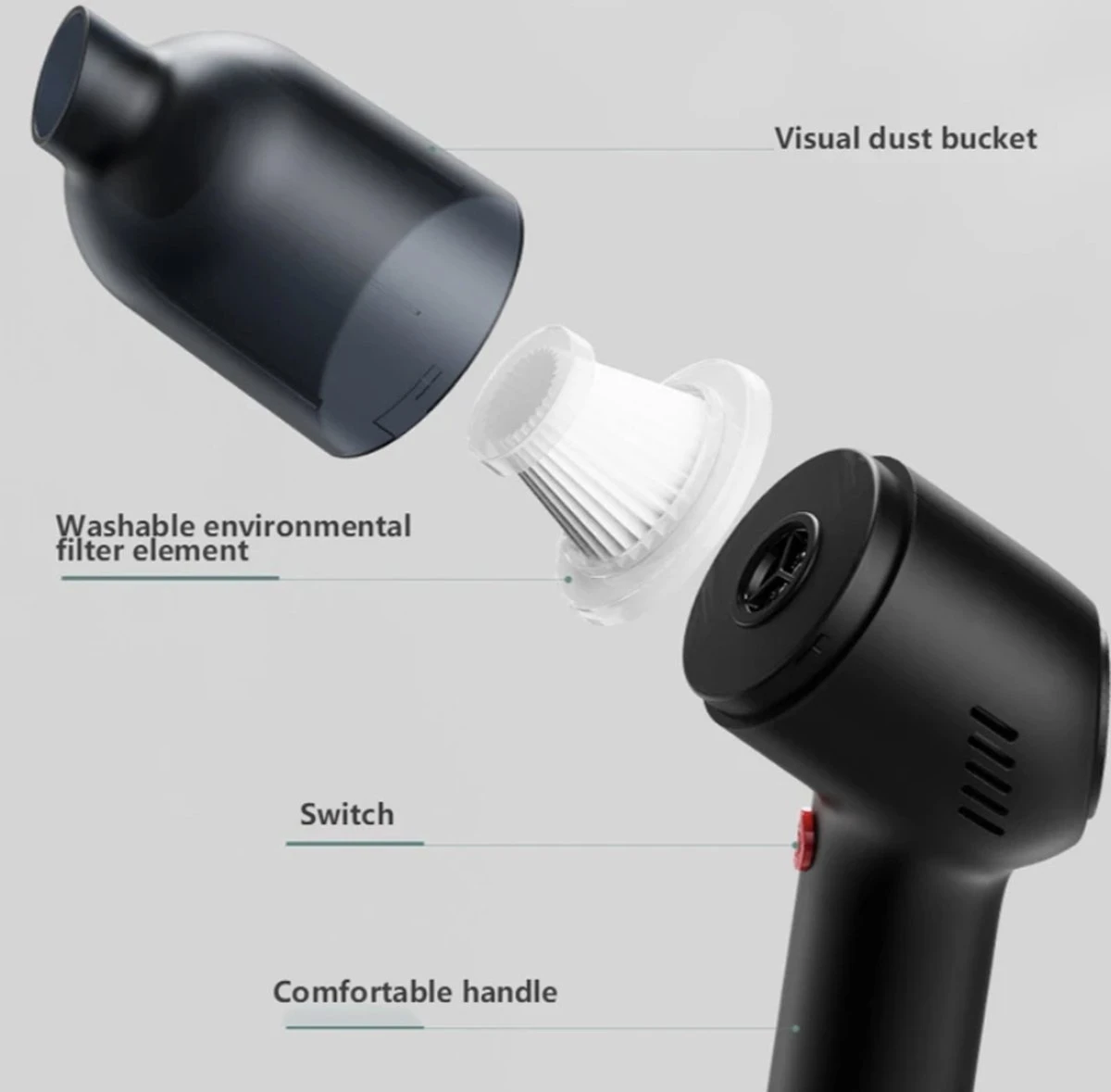 Avec une puissance d’aspiration de 8000pa, cet aspirateur est capable d’aspirer même les plus petites miettes et particules de poussière. Cela le rend non seulement parfait pour nettoyer votre voiture, mais aussi pour passer l’aspirateur sur votre canapé, votre tapis, votre clavier et votre étagère.