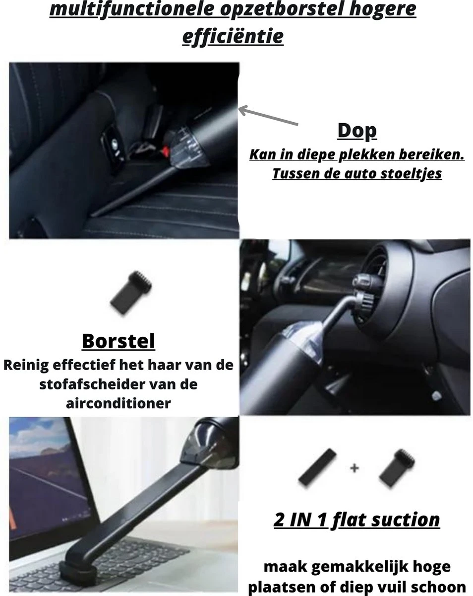 Avez-vous déjà eu l’un de vos amis/famille qui voulait venir chercher quelque part ? Et dans votre voiture, il y a toutes sortes de dégâts Chips, poussière et autres miettes gênantes. Avec le Aspirateur sans fil empêcher toutes ces miettes sales de votre voiture. Si tout a l’air propre, vous irez chercher des amis/de la famille avec un bon feeling. Avant d’envoyer le produit, nous avons tout vérifié afin que vous receviez ce que vous voyez sur la photo.