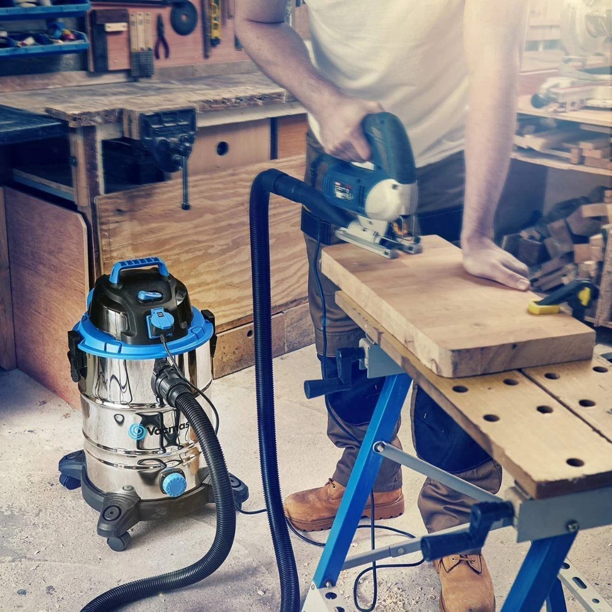 L’aspirateur eau-poussière est un aspirateur industriel qui convient aussi bien aux surfaces humides qu’aux surfaces sèches. Cet aspirateur puissant a une puissance de 1600 watts et est équipé d’un grand réservoir de collecte de 30 litres. L’aspirateur a également une fonction de soufflage, ce qui le rend approprié pour souffler des feuilles, par exemple.