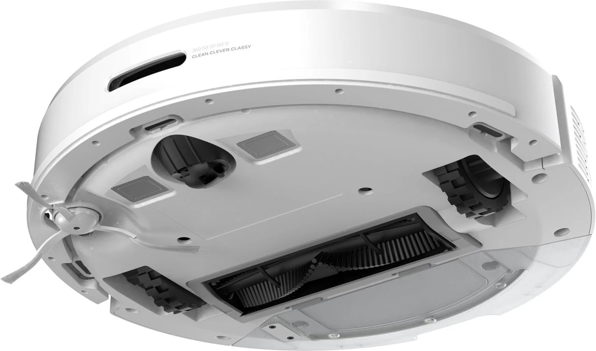 Il s’agit du robot aspirateur 360 S8, en blanc. Cet aspirateur robot dispose de diverses fonctions, dont l’aspiration et le nettoyage, avec une autonomie allant jusqu’à 2 heures. L’aspirateur robot dispose d’un réservoir d’eau intégré de 320 ml et d’un réservoir de poussière intégré de 360 ml, ce qui permet à l’aspirateur de nettoyer jusqu’à 100 mètres carrés.