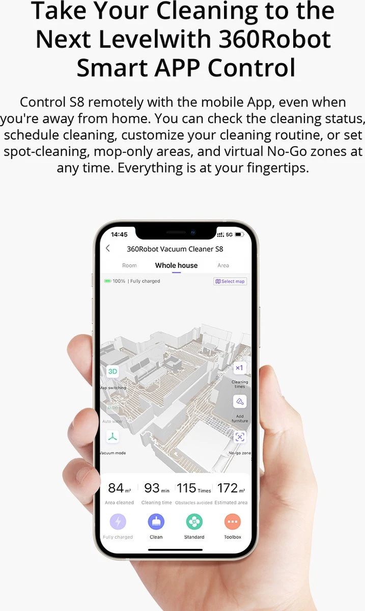Vous ne voulez plus vous soucier de passer l’aspirateur et de passer la serpillière à la maison ? Alors le Robot Aspirateur 360 S8 est la solution voor jou!