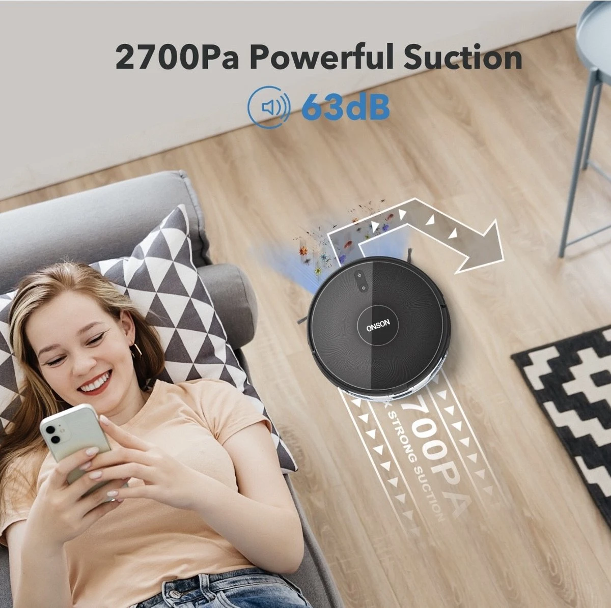 Le robot Onson apprend la disposition de votre maison et crée des cartes Smart personnalisées afin qu’il puisse nettoyer et naviguer de manière experte avec des mouvements précis et efficaces pour laisser un sol impeccable. Et lorsque la batterie est épuisée, le robot se recharge et reprend là où il s’était arrêté pour s’assurer que le travail est fait.