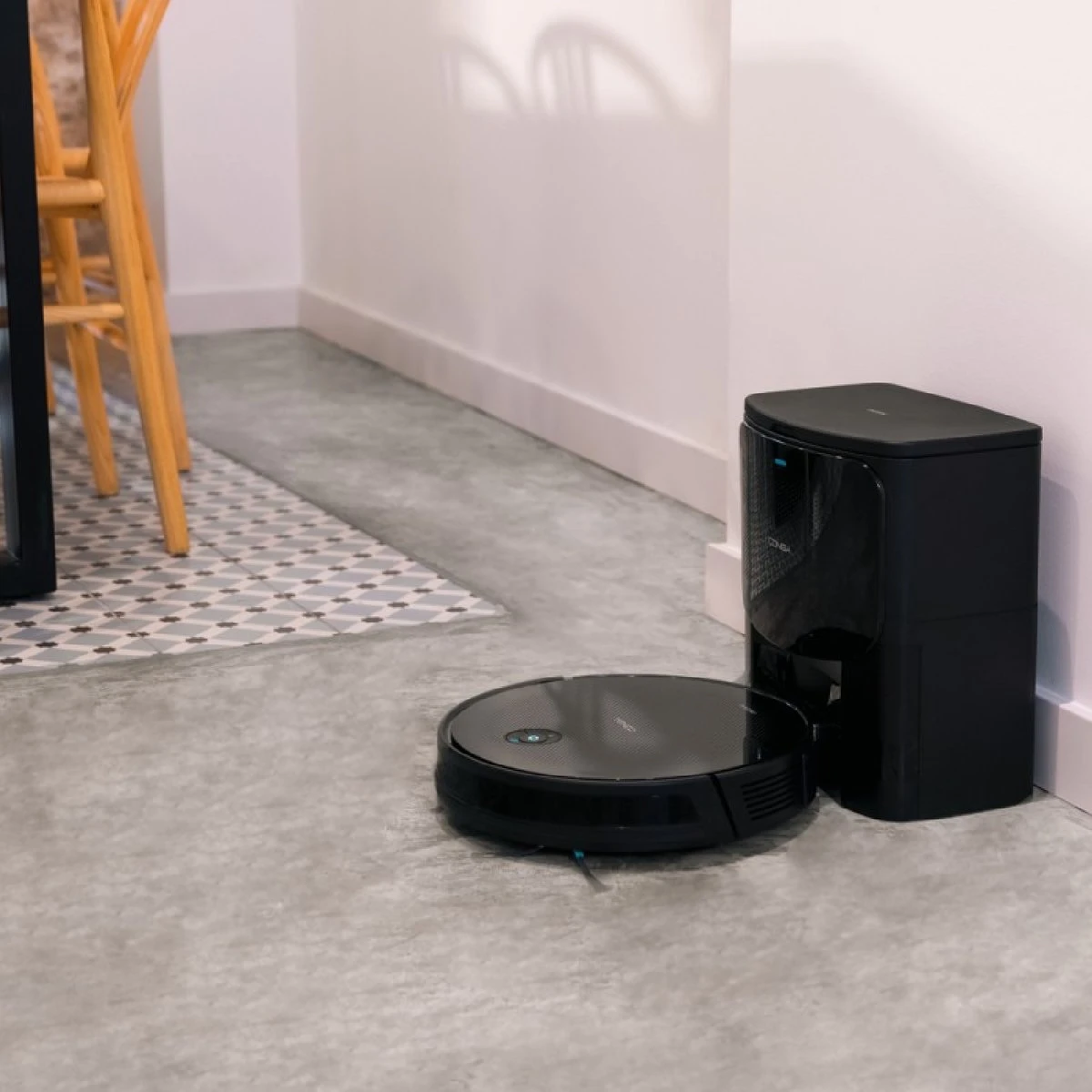 Puissance d’aspiration de 2100 Pa et mode turbo automatique pour le nettoyage des tapis. Il a une autonomie allant jusqu’à 160 minutes et avec la technologie Total Surface qui ramène le robot à sa base lorsqu’il est à court de batterie pour se recharger et continuer à nettoyer là où il s’est arrêté.