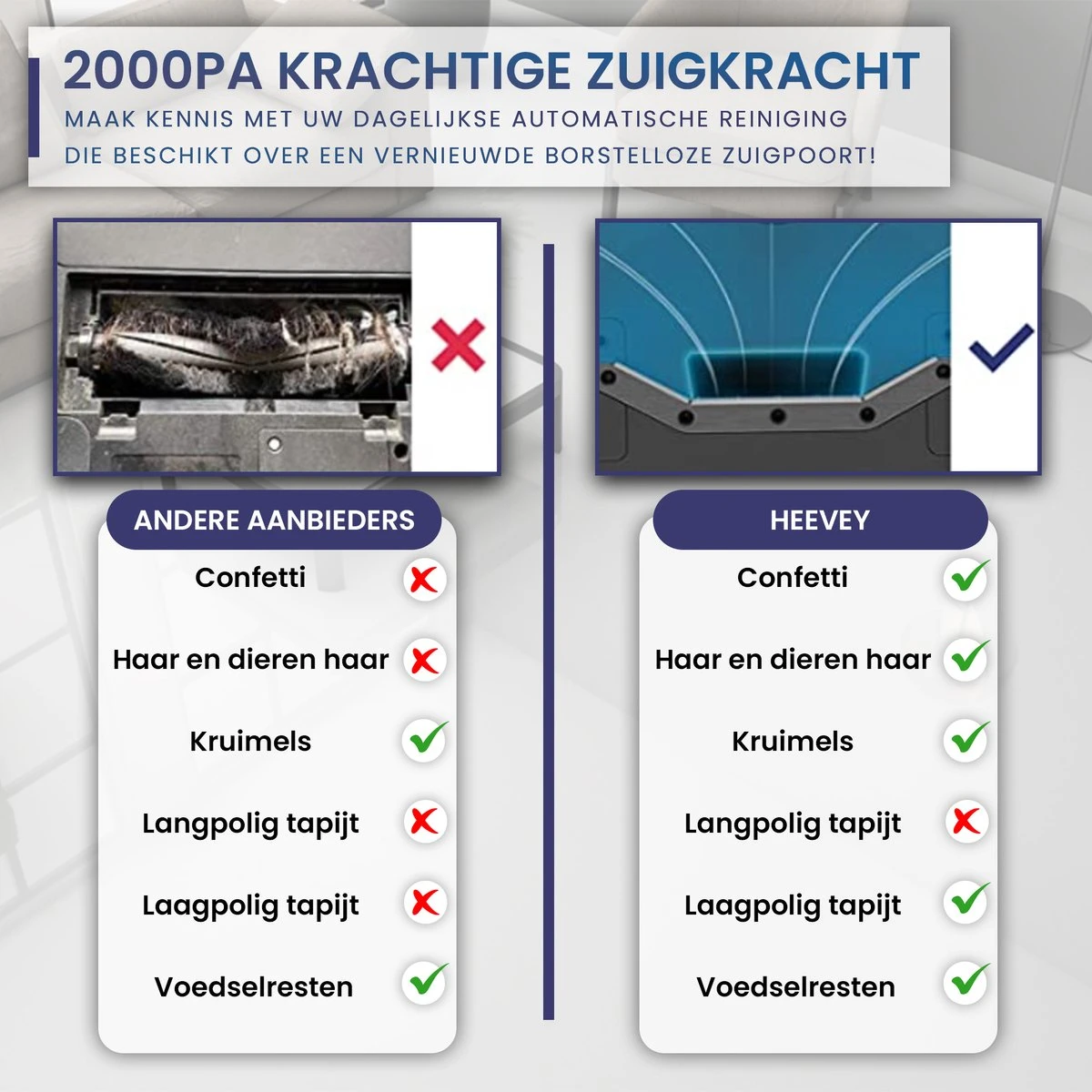 Cet aspirateur robot est non seulement adapté à l’aspiration, mais dispose également d’options pour balayer et laver. Cela rend Heevey adapté à tous les types de foyers pour le sol intérieur !