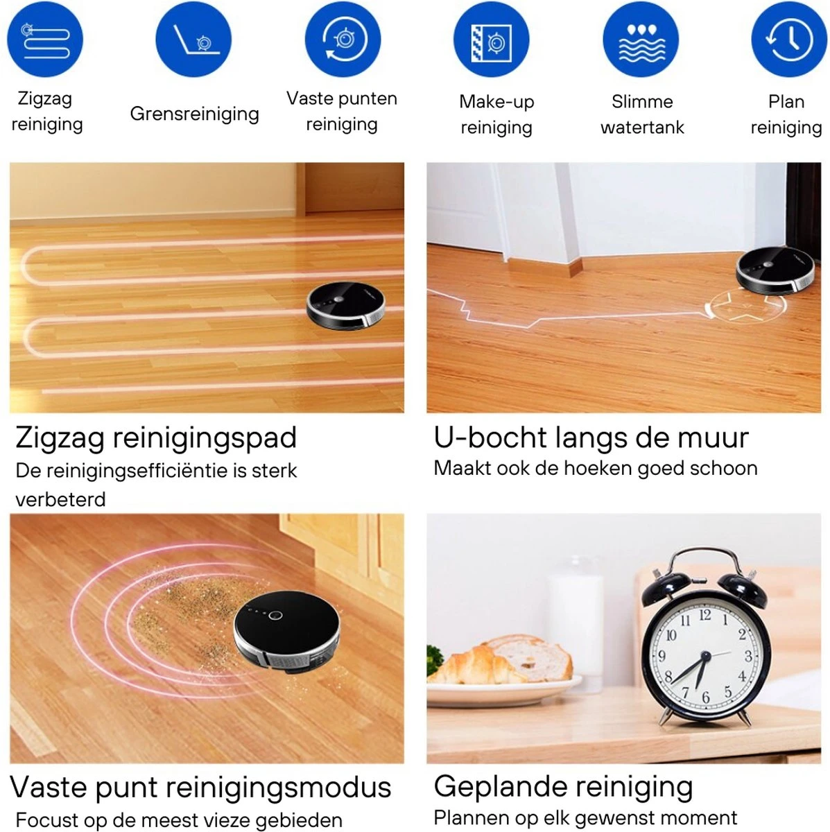 Gain de temps considérable : l’aspirateur fait le tour de toute la maison pour aspirer, sans que vous ayez à faire quoi que ce soit.