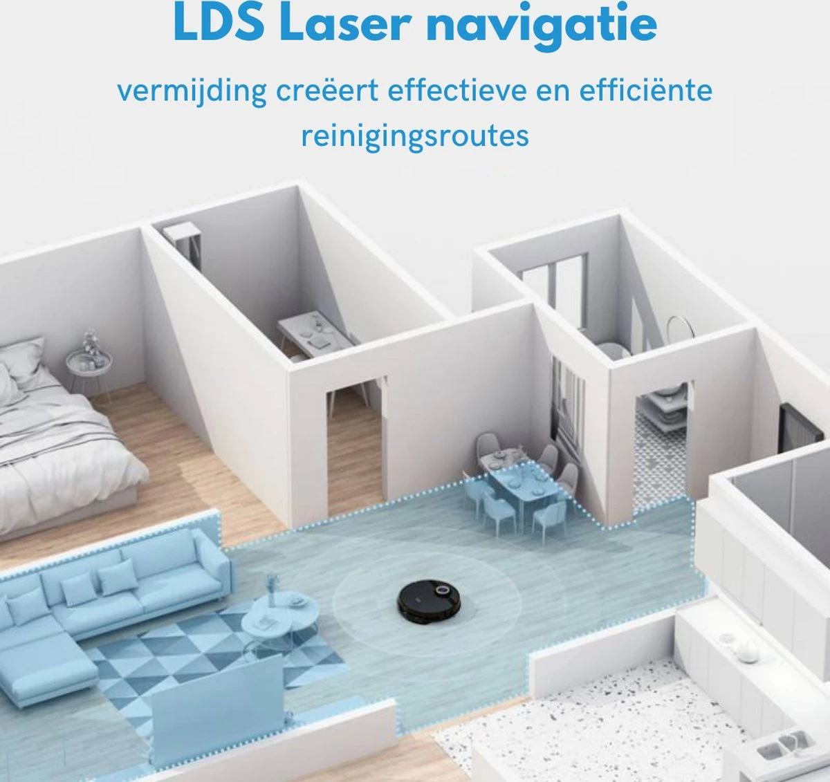 Grâce à la nouvelle technologie de navigation laser LDS, le Midea M7 Pro peut créer une carte précise de votre maison, permettant au robot de nettoyer efficacement et de manière optimale votre maison sans surfaces manquantes ou répétées.