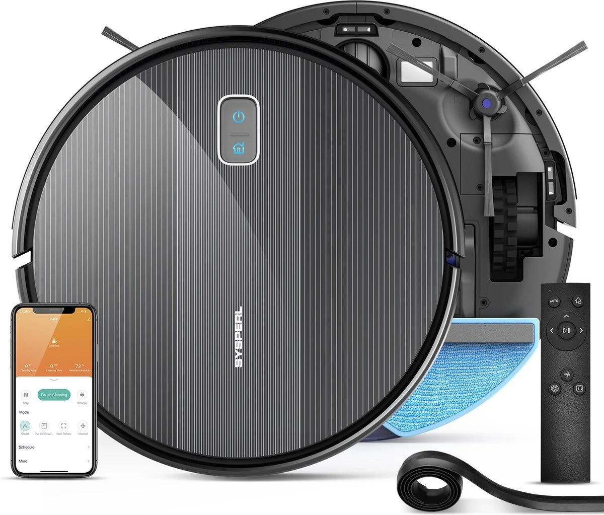 L’aspirateur robot SYSPERL V41P combine l’aspiration et le nettoyage. Robot serpillière et aspirateur V41P équipé d’une poubelle de 300ml et d’un réservoir d’eau de 250ml, si du lait, du jus, de la confiture est accidentellement versé sur votre bois dur, vous pouvez utiliser l’aspirateur robot SYSPERL qui a installé la serpillère à chiffon humide pour le nettoyer instantanément, serpillère V41P Et le robot aspirateur peut également nettoyer instantanément d’autres taches sur les sols carrelés ou en pierre, afin que vous puissiez profiter d’une maison complètement propre grâce à un système de nettoyage intelligent.[Aspiration super forte 2600 Pa] :