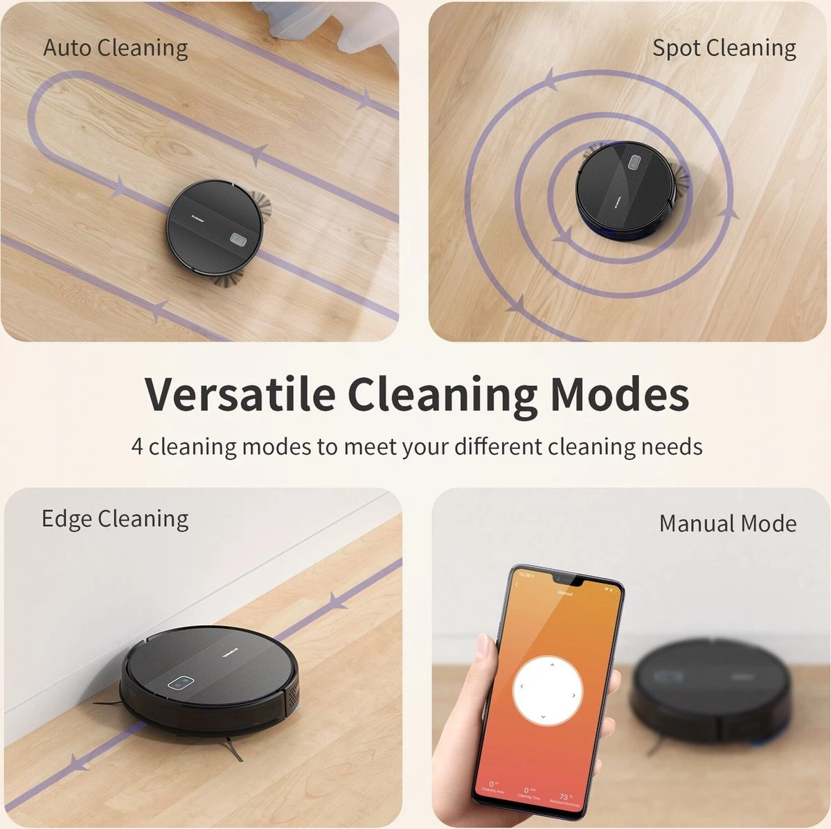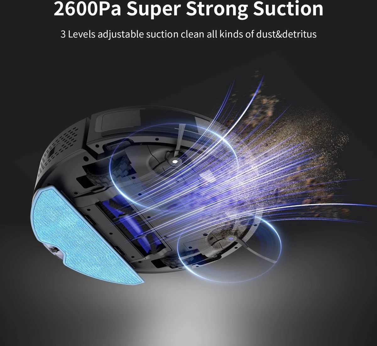 Robot aspiradora V41P fonctionnant avec une forte aspiration maximale de 2600 pa, le robot SYSPERL peut facilement balayer les poils d’animaux et la chapelure, la saleté et autres débris. Le robot aspirateur intelligent Alexa peut basculer librement entre 3 niveaux d’aspiration pour répondre à vos différents besoins de nettoyage. Fonctionne parfaitement sur la moquette, les planchers de bois, les carrelages et est un choix idéal pour la santé [4 modes de nettoyage à haute efficacité] :