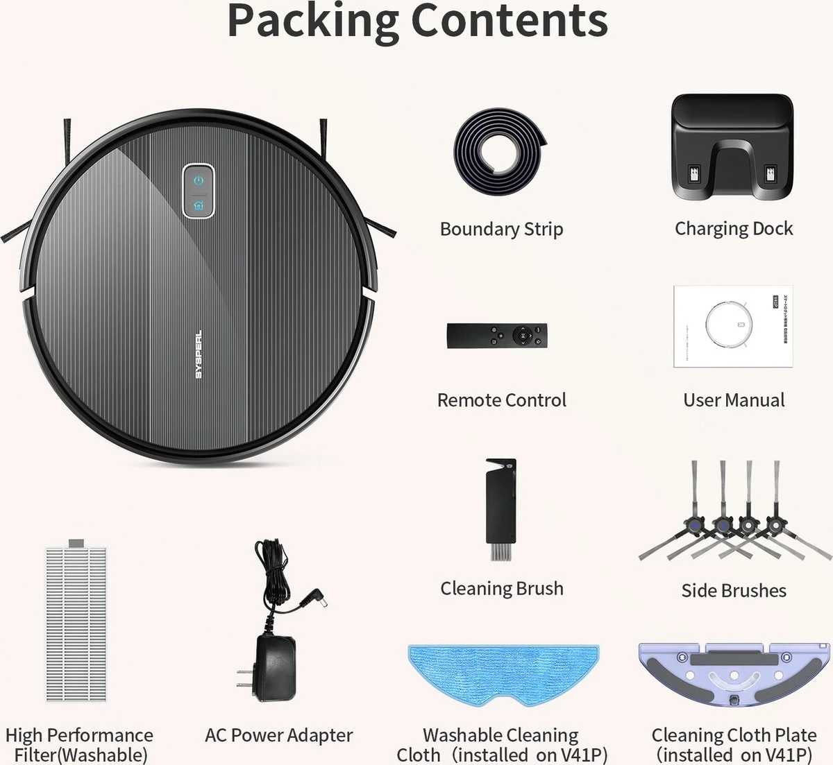 Vous cherchez un robot aspirateur qui s’occupe de cette corvée ménagère ? Avec le robot aspirateur v41p, nous prenons en charge ce travail quotidien pour vous ![Aspirateur robot Serpillière 2 en 1] :