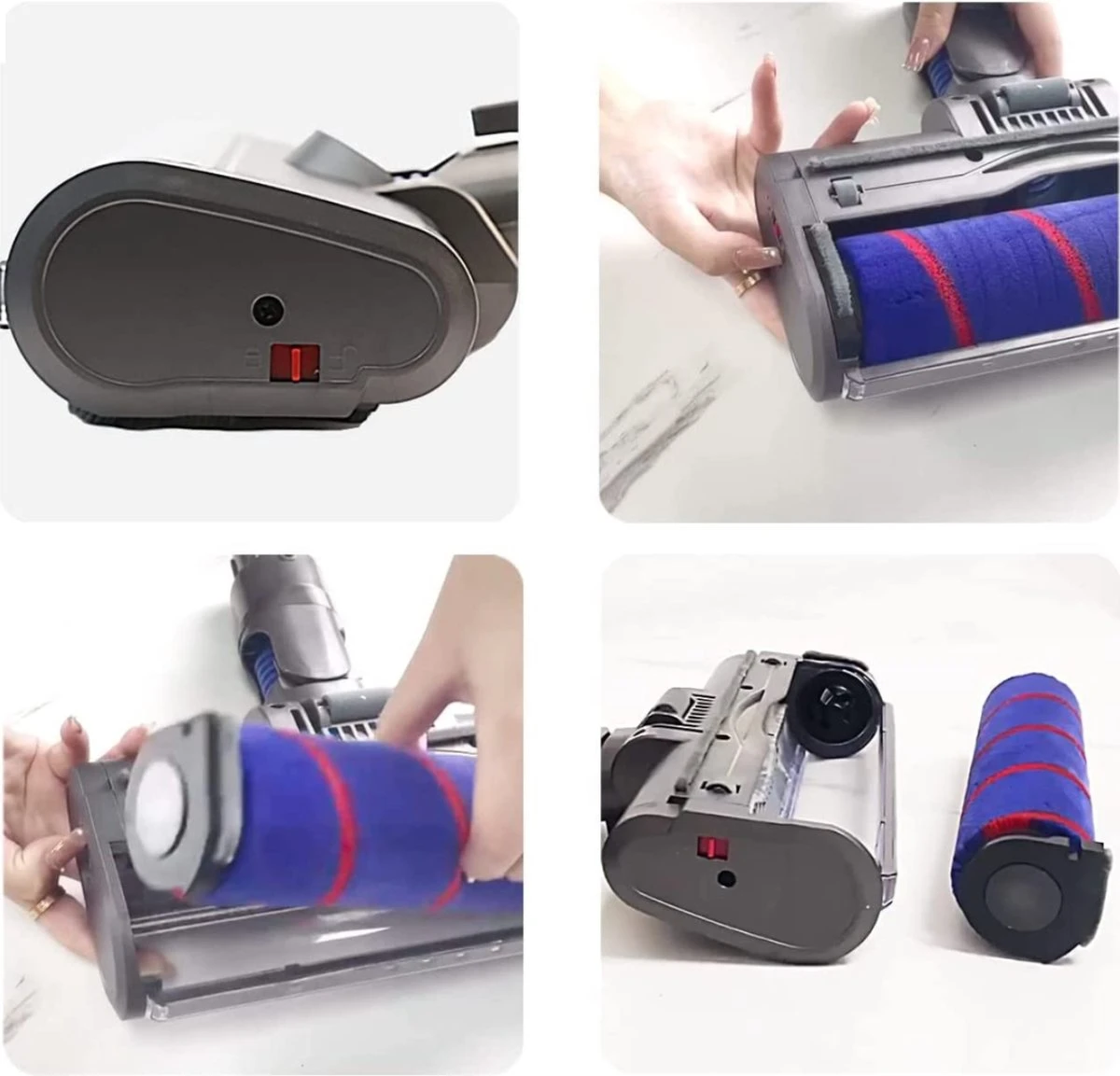 La brosse à rouleau duveteuse/douce est facile à retirer grâce à un mécanisme coulissant. Vous pouvez ensuite le nettoyer de tous les poils attrapés et le rincer sous le robinet pour enlever la saleté grossière. Après 12 heures de séchage, vous pouvez facilement remettre le rouleau souple en place et vous pouvez à nouveau aspirer sans souci.