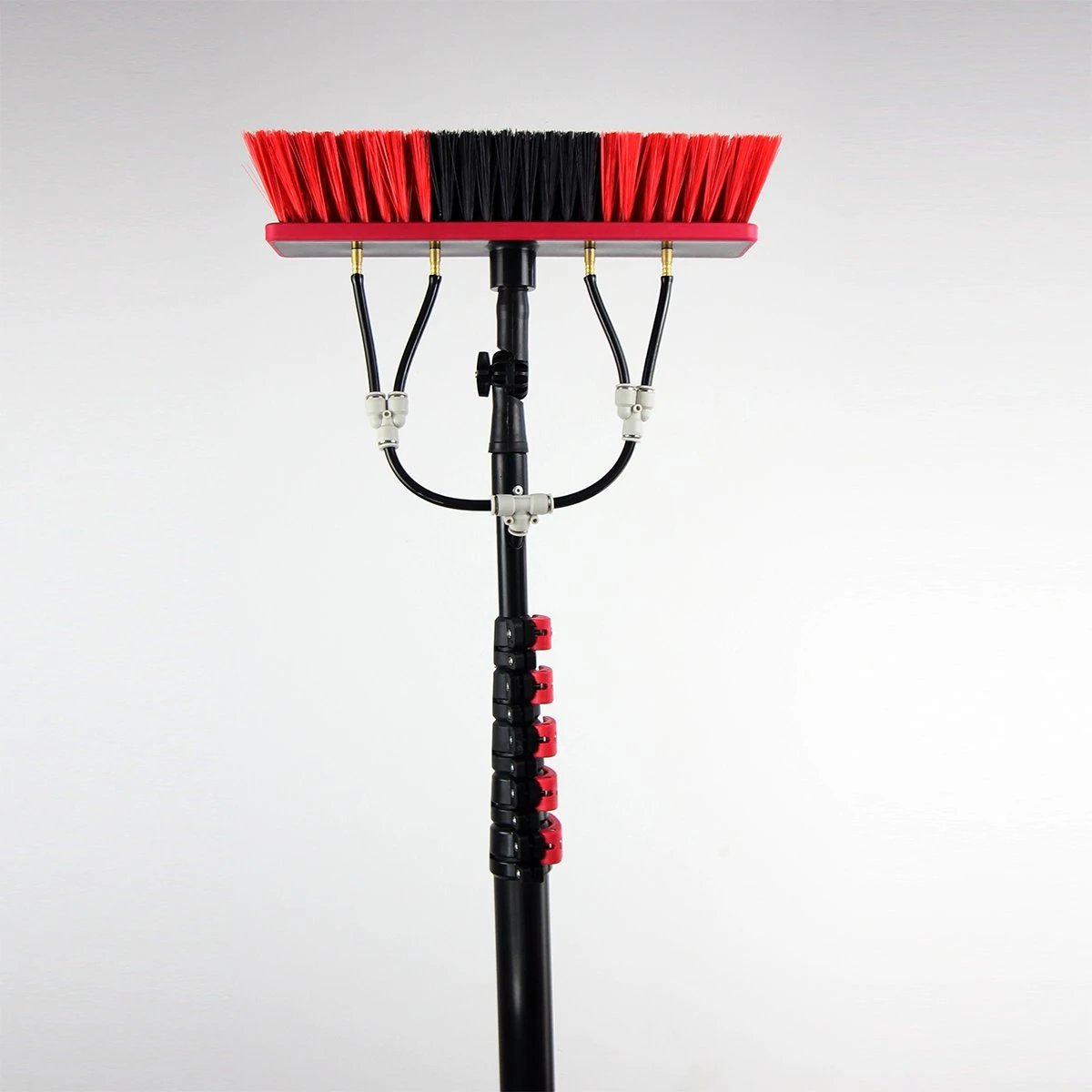 La brosse télescopique Kibani 3,60 m est équipée d’un manche extensible en aluminium de haute qualité. La tige est facilement extensible grâce aux pinces rouges qui sont attachées à la tige. La brosse télescopique s’adapte sur un raccord Gardena, ce qui garantit qu’elle est facile à connecter à votre alimentation en eau. La brosse télescopique Kibani n’a pas moins de 4 tuyaux d’arrosage, chez les concurrents il n’y en a souvent que 2.