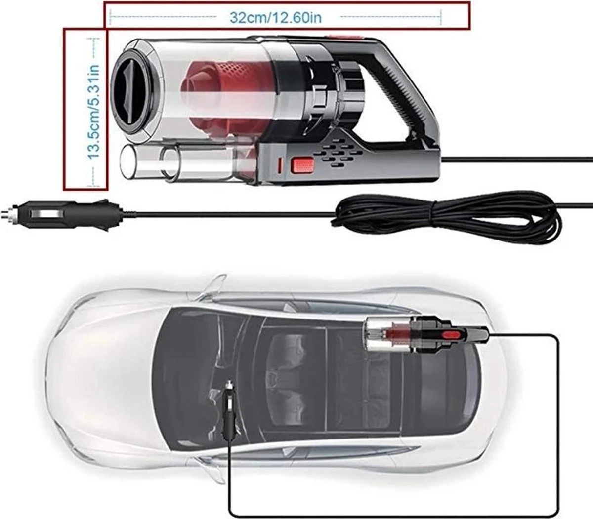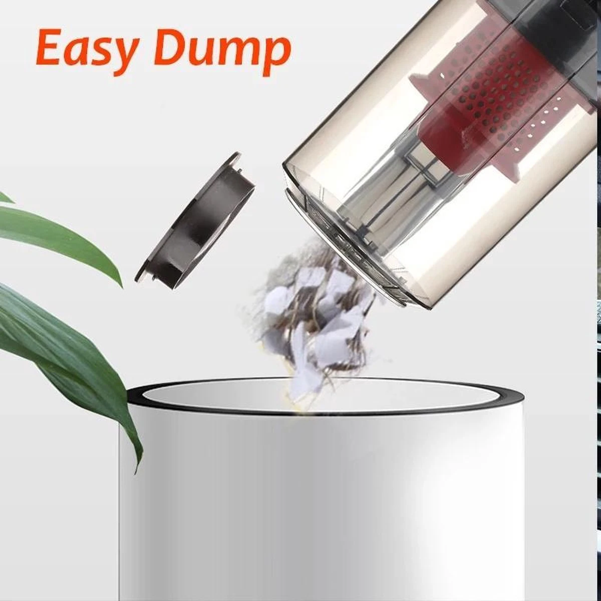 L’aspirateur de voiture portable a un design super pratique. Le design astucieux permet d’atteindre tout, les petites fentes, les recoins gênants et les poches. Vous pouvez également voir en passant l’aspirateur à quel point le bac est plein, quand il doit être vidé et il est très facile à vider. De plus, il y a un couvercle de protection qui maintient les déchets à l’intérieur.