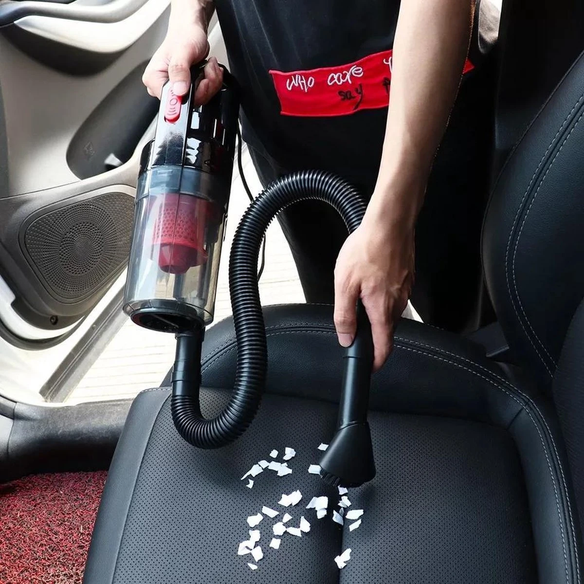 L’aspirateur à main est conçu de manière à ce que tous les types de saletés puissent être aspirés. Que ce soit des miettes, de la poussière, de la terre, de la boue, de l’eau ou autre liquide, des poils d’animaux ou des cendres de cigarettes. Cela signifie que vous n’avez pas besoin d’essuyer le tableau de bord, etc. avec de l’eau savonneuse pendant un certain temps après avoir passé l’aspirateur. L’aspirateur à main est convivial.
