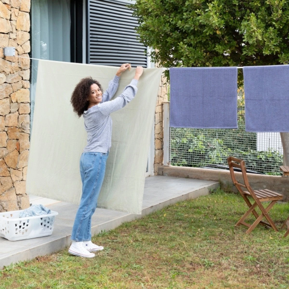 Une corde à linge coulissante originale et polyvalente qui est très utile et pratique pour accrocher les vêtements de la meilleure façon possible. Il est doté d’une ceinture avec des trous pour les cintres, qui peut être entièrement ajustée en fonction de la quantité de vêtements à suspendre et permet de maintenir les cintres en toute sécurité. La ceinture peut être rallongée à la longueur souhaitée (max. 4 m) selon les besoins. Il dispose d’un verrou pour que la sangle puisse être retirée et fixée à la longueur souhaitée. Grâce à sa conception compacte, légère et rétractable, la corde à linge prend très peu de place lorsqu’elle n’est pas utilisée car elle est entièrement rétractée et reste discrètement fixée au mur, économisant de l’espace et en profitant au maximum. Ce type de corde à linge facilite un séchage et un repassage rapides, car les vêtements ne sont pas empilés et sont maintenus à la bonne distance pour permettre à l’air de circuler entre les différents vêtements, qui sont suspendus sur des cintres et bien étirés pour réduire les plis. En raison de sa longueur entièrement allongée, il a une grande capacité et convient à tous les types de vêtements. Il peut supporter un poids maximum de 20 kg. Bien qu’il soit conçu pour être utilisé principalement avec des cintres, les vêtements peuvent également être attachés avec des pinces à linge ou suspendus directement à la ceinture, selon le vêtement et l’utilisation que vous souhaitez en faire. Les cintres et les pinces à linge ne sont pas inclus. L’orientation peut être ajustée (180º) et il peut être utilisé aussi bien à l’intérieur qu’à l’extérieur. Se fixe au mur et est livré avec des instructions et des accessoires de montage (2 supports muraux, clé Allen, 7 vis et 7 chevilles).