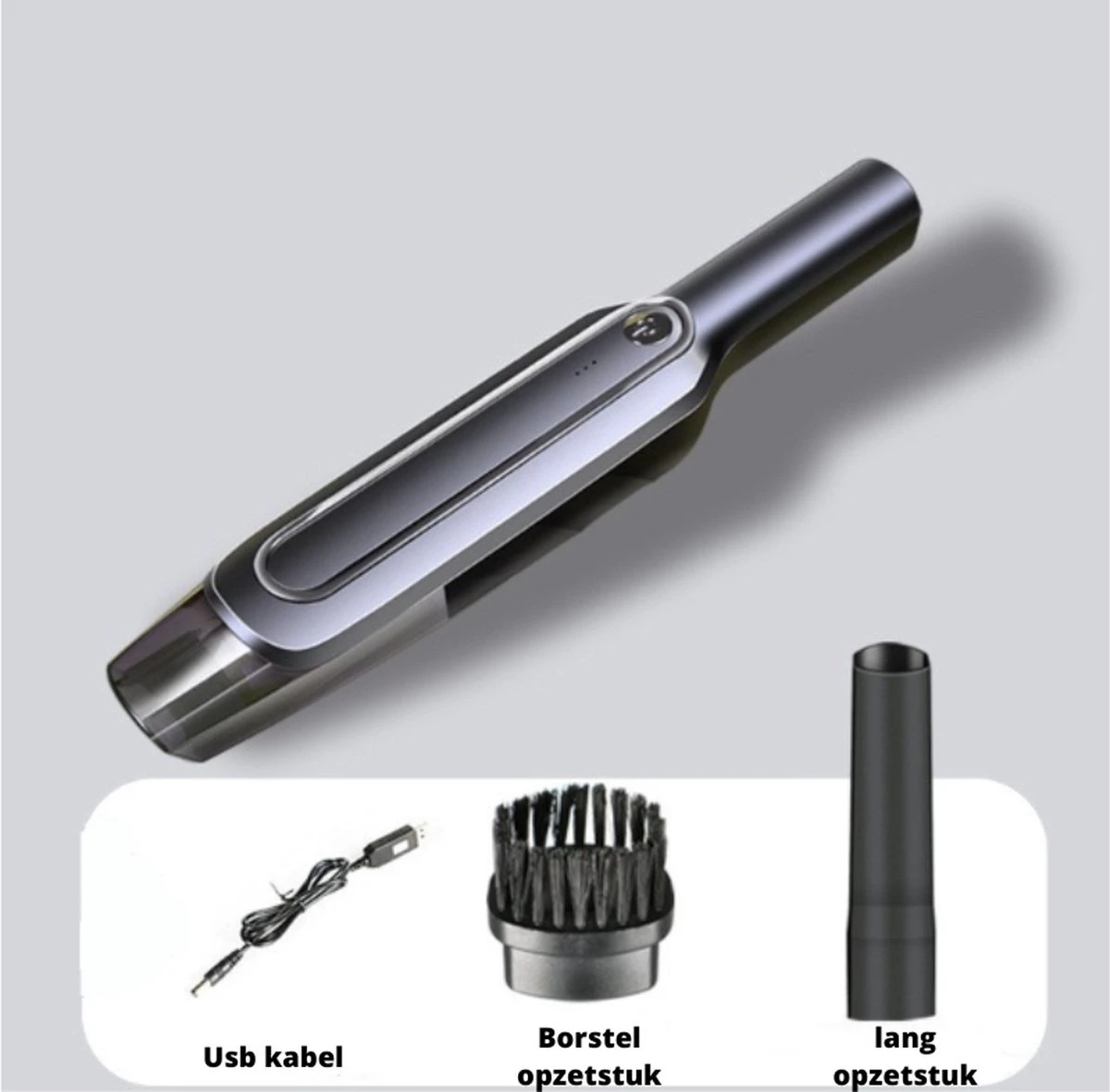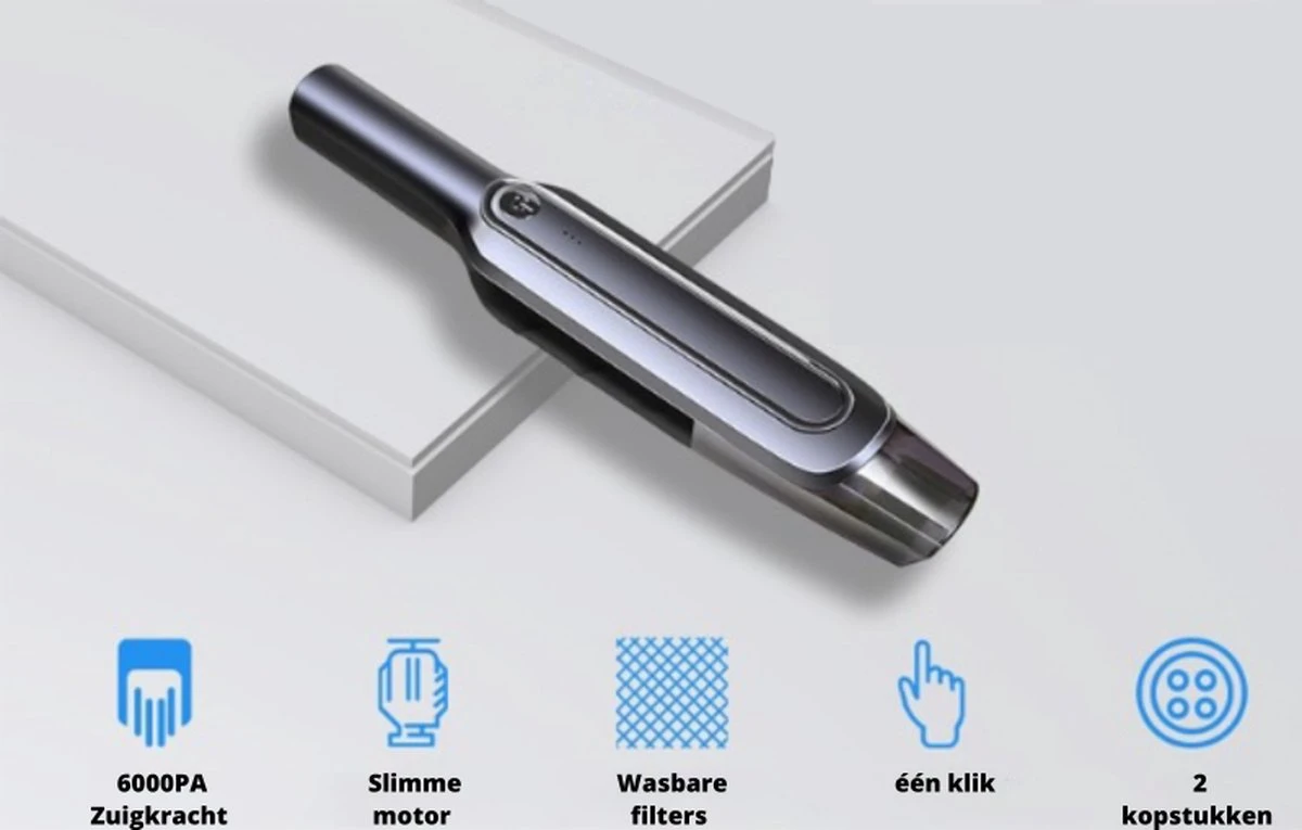 L’aspirateur est rechargeable à la fois dans la voiture et à la maison et est livré avec un câble de chargement USB. De plus, l’aspirateur est entièrement sans sac et équipé d’un récipient de collecte pratique et facile à vider. Les petites particules de poussière, le pollen et les bactéries sont également aspirés grâce au filtre Hepa. De plus, deux têtes supplémentaires sont incluses pour améliorer le processus d’aspiration.