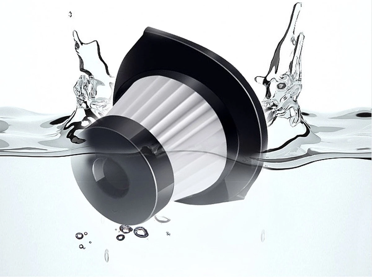 Vider et nettoyer l’aspirateur de voiture est un jeu d’enfant. Retirez le couvercle, videz le récipient et lavez le filtre Hepa.