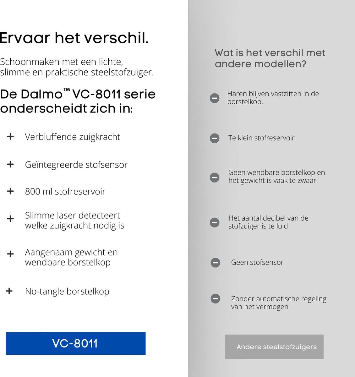 Basculez en quelques secondes entre la puissance d’aspiration appropriée pour chaque situation. La présentation claire sur l’écran tactile et l’indication lumineuse pendant l’utilisation indiquent clairement dans quel mode vous travaillez. Geen d’écran tactile complexe qui est difficile à utiliser. Contrairement à cela, le VC-8011 offre un écran tactile de haute qualité et facile à utiliser.