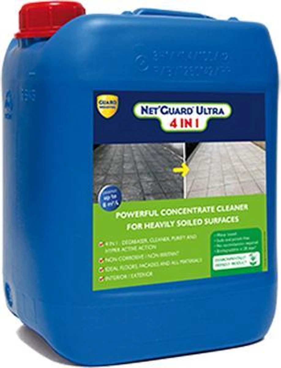 Net’Guard® Ultra 4 en 1 est constitué de molécules facilement biodégradables et efficaces sans soude ni potasse et n’a pas besoin d’être neutralisé après rinçage à l’eau. Contrairement aux produits corrosifs ou irritants couramment utilisés, Net’Guard® Ultra 4 en 1 offre tous les avantages en termes de facilité d’utilisation, d’efficacité et de sécurité. Une seule application, suivie d’un rinçage, sans laisser sécher, élimine les taches de graisse et les saletés dues à la pollution atmosphérique et industrielle.