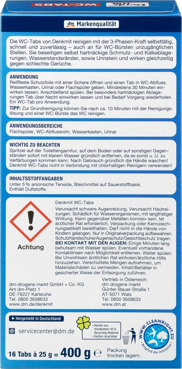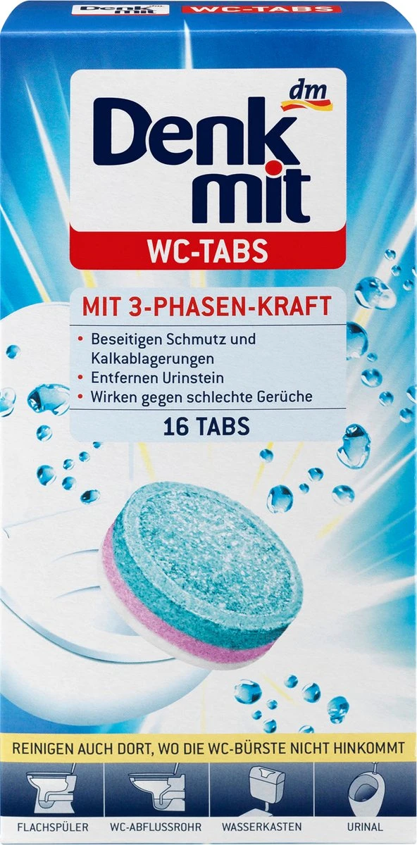 Avec leur alimentation triphasée, les tablettes de toilette Denkmit nettoient automatiquement, rapidement et de manière fiable – même dans les endroits inaccessibles aux brosses de toilette.