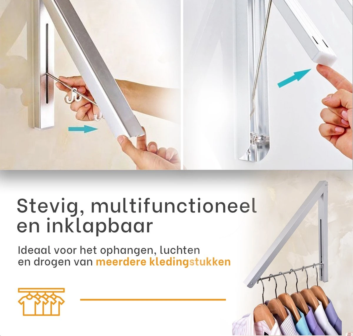 Étendoir à linge très robuste, multifonctionnel et pliable destiné au montage mural, facile à assembler.