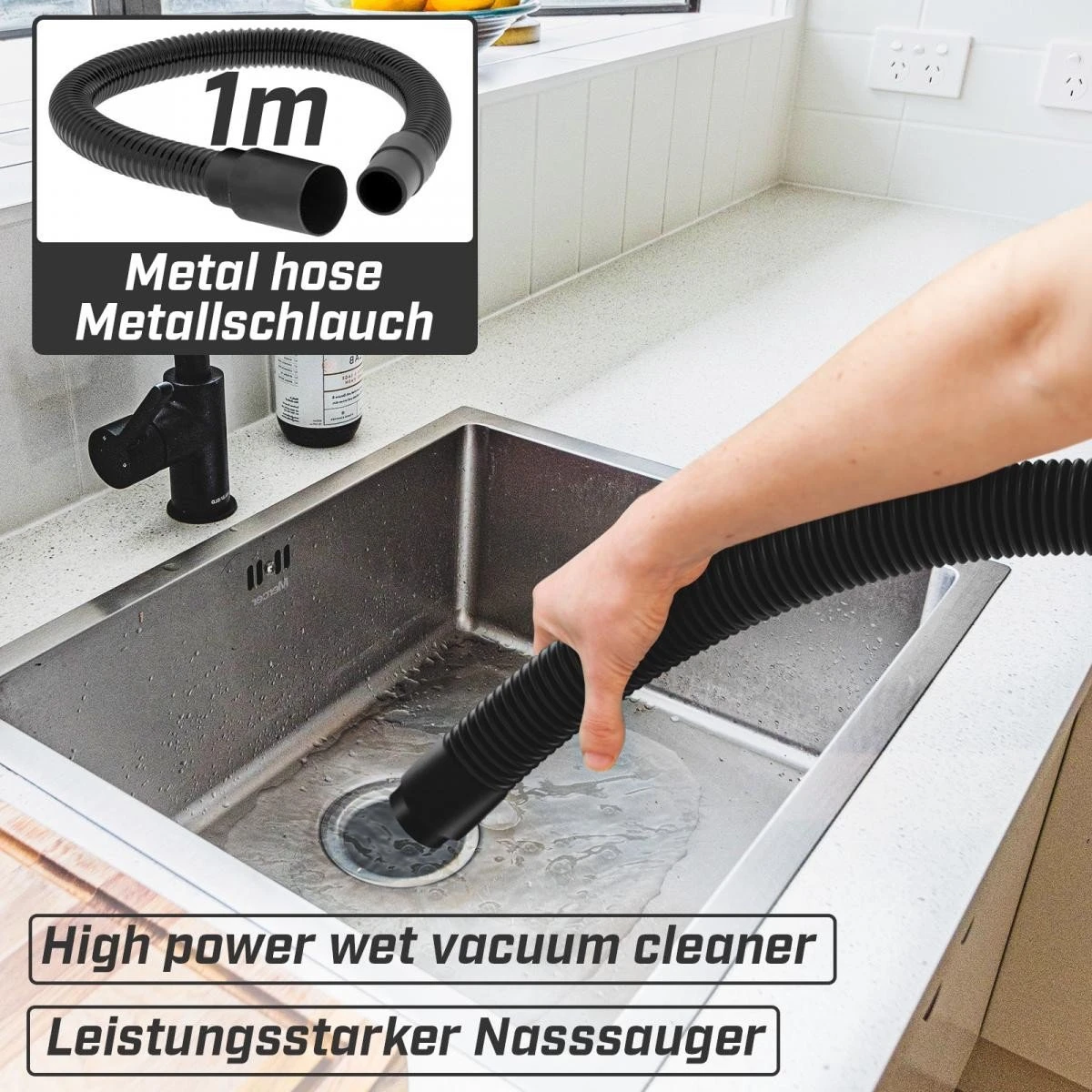 - Pratique : l’aspirateur multifonction dispose d’un drain d’eau dans la partie inférieure, ce qui le rend très facile à vider. De plus, grâce aux roues à 360°, il est très mobile