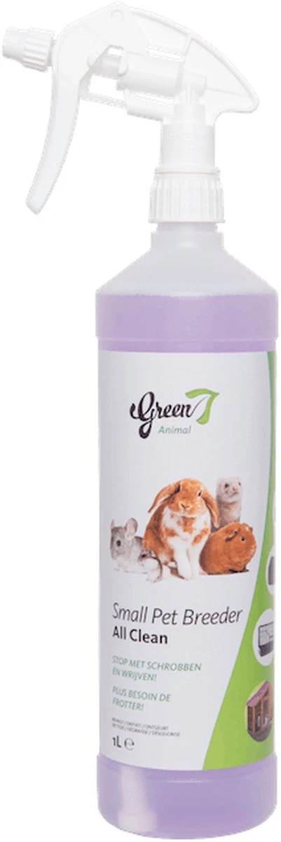 L’amateur et l’éleveur professionnel de petits animaux de compagnie peut se reposer tranquillement en connaissant le Green7 Small Pet Breeder All Clean. Ce nettoyant et dégraissant à action rapide élimine toute pollution organique et neutralise en même temps l’odeur d’urine et de matières fécales. De plus, ce nettoyant est sans odeur pour tous les petits mammifères et 100% biodégradable. De plus, ce nettoyant est homologué HACCP, ce qui signifie qu’il répond aux normes d’hygiène les plus élevées.