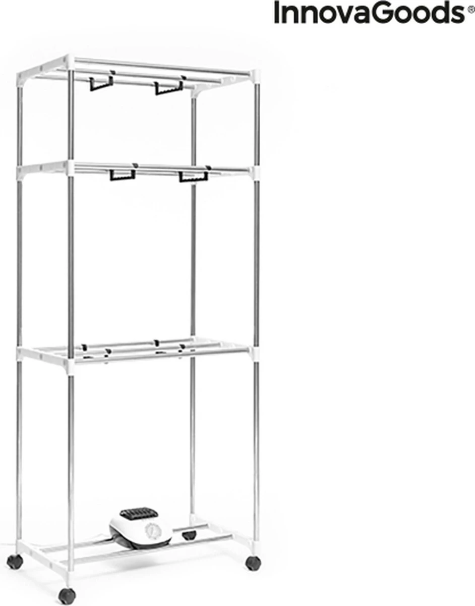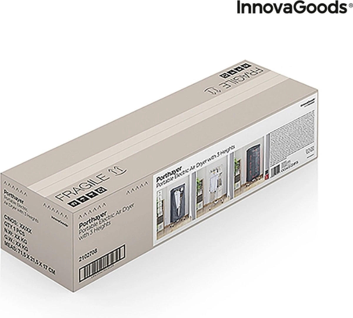 Un séchoir électrique portable à plusieurs niveaux qui est parfait pour sécher plus rapidement et plus facilement, vous faisant gagner du temps et des efforts. Les vêtements sèchent droits et sont moins froissés, ce qui les rend plus faciles à repasser. Ce sèche-linge est très facile à utiliser et à emporter partout car il dispose de 4 roues de transport avec rotation à 360º et d’un bloc de sécurité pour le maintenir fermement en place. Les Vêtements peuvent être suspendus dans différentes positions (en avant ou sur le côté) car il comprend 6 supports supplémentaires pour suspendre les cintres, ainsi que les barres qui composent la structure. Il a une grande contenance et convient à tous types de vêtements de toutes tailles. Il atteint une température de 70 ºC, ce qui stérilise les vêtements et élimine les odeurs. La housse externe est amovible et peut être lavée à la main. Il a une fermeture éclair et protège les vêtements de la poussière et autres saletés environnementales. Le puissant réchauffeur d’air est silencieux et dispose d’un thermostat de sécurité pour éviter la surchauffe. La minuterie peut être utilisée pour programmer le temps de séchage, après quoi elle s’éteint automatiquement. Il est facile à monter et à démonter. Il vous suffit de suivre les instructions de montage.