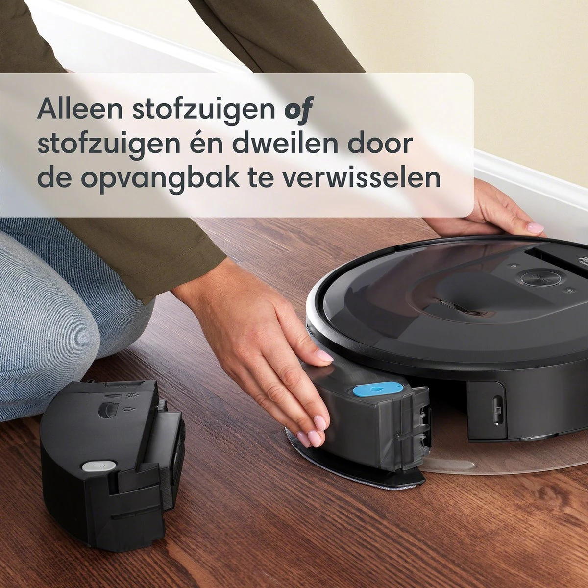 Aspirateur robot et serpillière Roomba Combo ™ i8 : Que vous ayez de la saleté humide ou sèche, avec l’aspirateur robot et serpillière robot Roomba Combo ™ i8 , vous pouvez effectuer un double nettoyage avec un seul appareil. Ce robot peut tout gérer, de la chapelure aux empreintes de tous les jours. Réglez votre Roomba Combo™ avec fonction de nettoyage pour aspirer uniquement ou pour aspirer et laver vos sols durs, simplement en changeant la poubelle du Roomba Combo™.