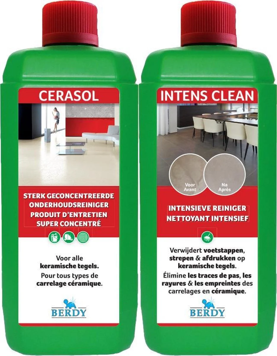 BERDY INTENS CLEAN nettoie et dégraisse tous les carreaux de céramique de manière intensive et assure ainsi un aspect naturel à votre sol et un parfum super agréable.
