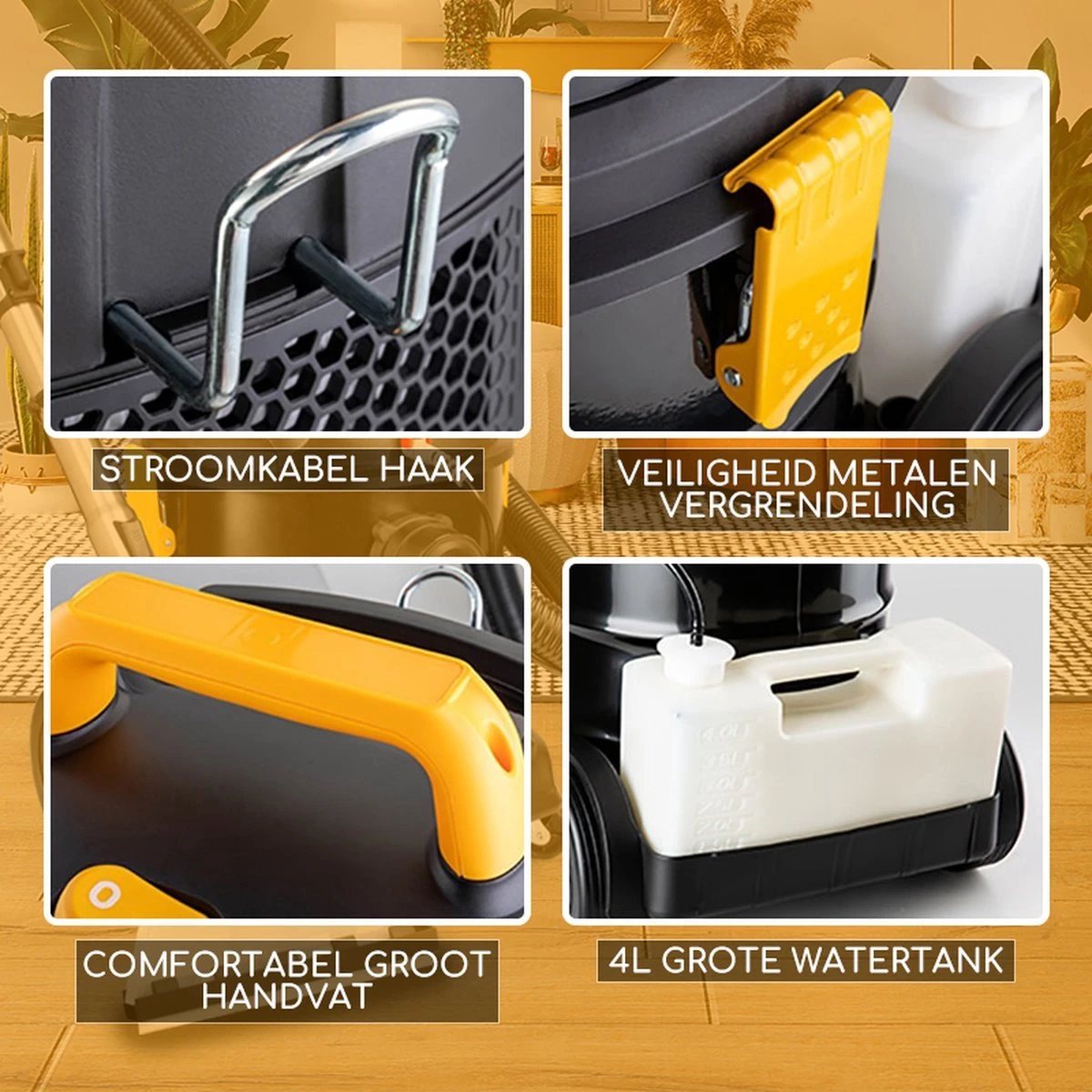 Avec ce puissant nettoyant multifonctionnel, vous pouvez tout redonner à nieuw! En raison de la forte aspiration, il élimine facilement toutes les taches tenaces. Cet aspirateur eau et poussière est principalement utilisé pour le nettoyage en profondeur des tapis et des tissus d’ameublement. Vous pouvez également utiliser la machine avec des résultats tout aussi bons sur des sols durs.