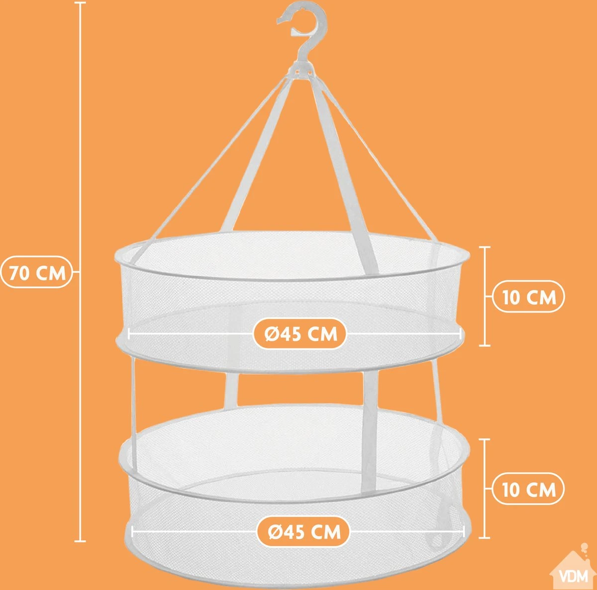 Ce LaundrySpecialist® PRACTICAL MESH DRYER XL est idéal pour sécher facilement le linge petit et / ou délicat. Vous pouvez facilement y mettre votre linge pour qu’il sèche. Facile à attacher, par exemple, à une grille de séchage à l’aide du crochet de suspension. Le sèche-linge suspendu en filet pratique est facile à plier et à ranger. En raison de la méthode de rangement compacte, le sèche-linge suspendu est également idéal à emporter avec vous en vacances. Dimensions environ 45 x 45 x 30 cm