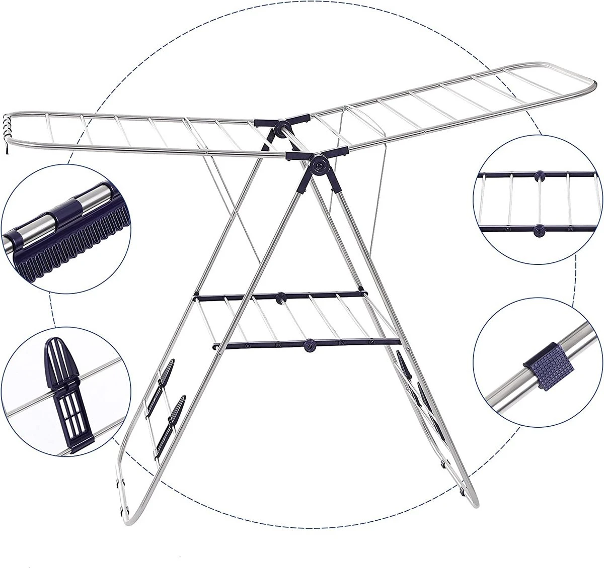 LAUWG – Étendoir à Linge Pliable, Séchoir à Linge Sur Pied Séchoir à Linge Aile Séchoir à Linge, Longueur De Séchage 16 M, En Acier Inoxydable, Argent, Groot