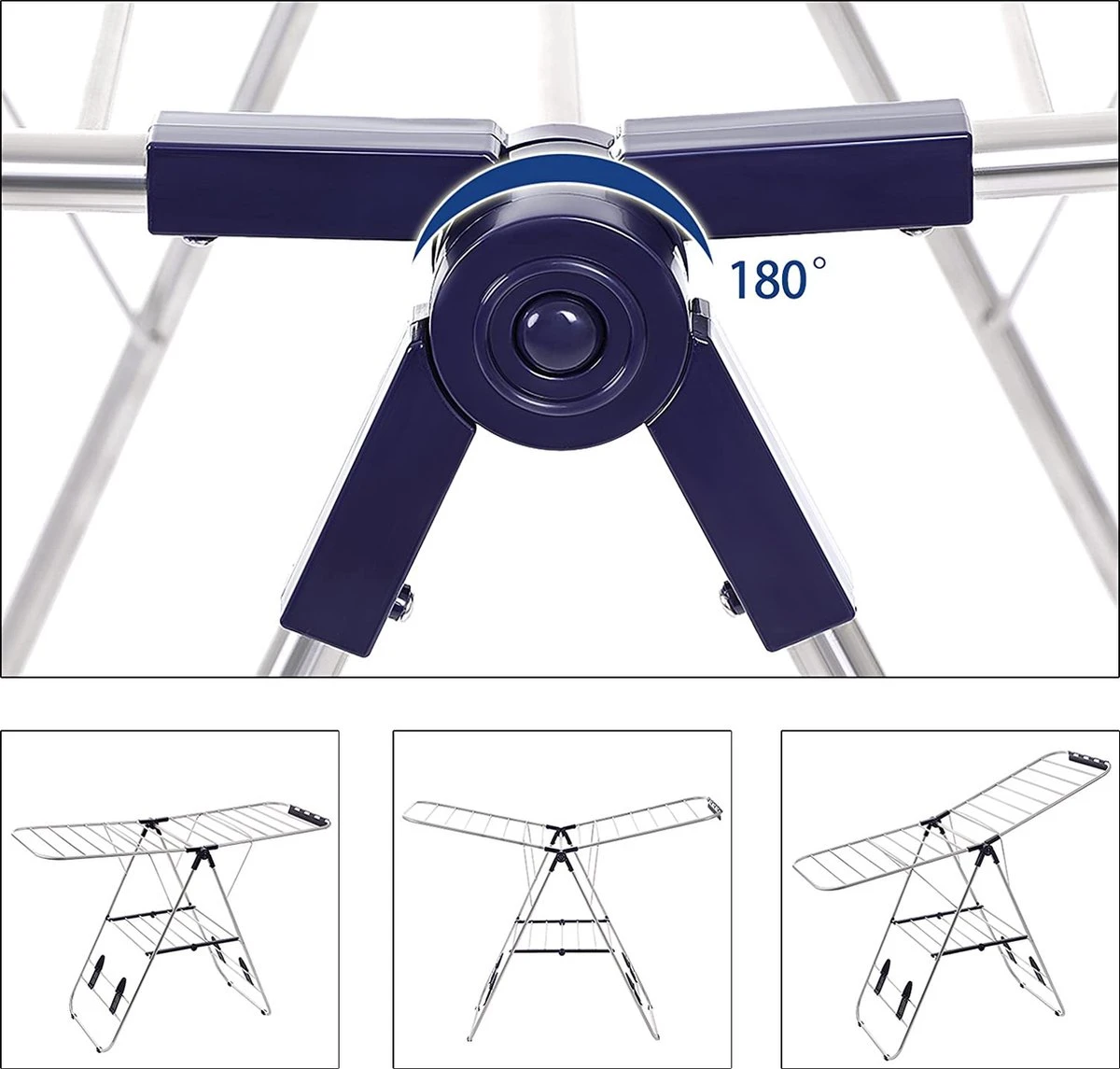 - Multifonctionnel : Les 26 porte-pièces supplémentaires contiennent des chaussettes, des sous-vêtements ou des chiffons ; entre les pieds du support de lavage d’aile se trouvent d’autres barres de séchage pour les vêtements plus petits tels que les vêtements d’enfants, etc. ; Vous pouvez également accrocher facilement des chaussures mouillées sur les 4 crochets coulissants inférieurs