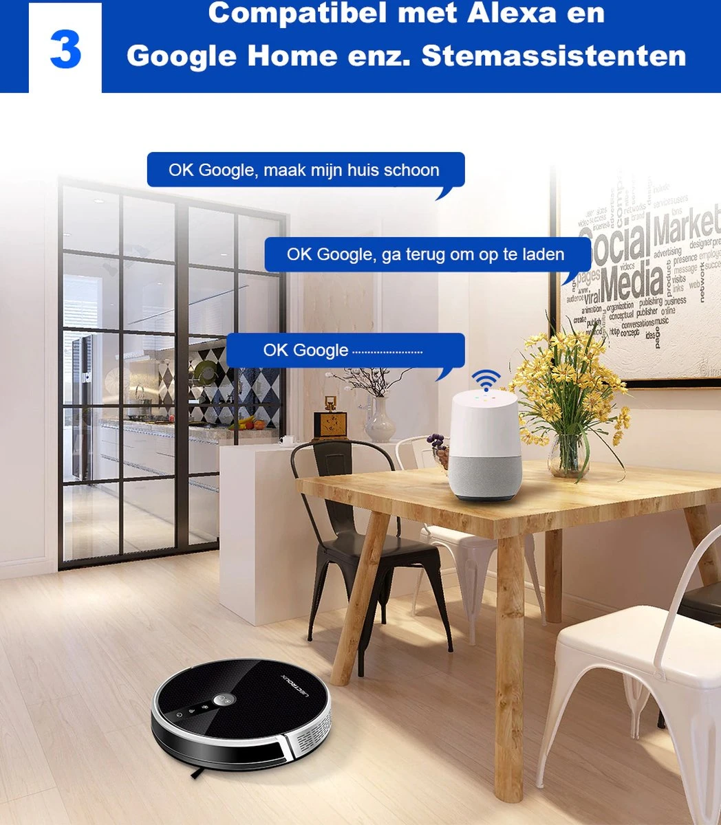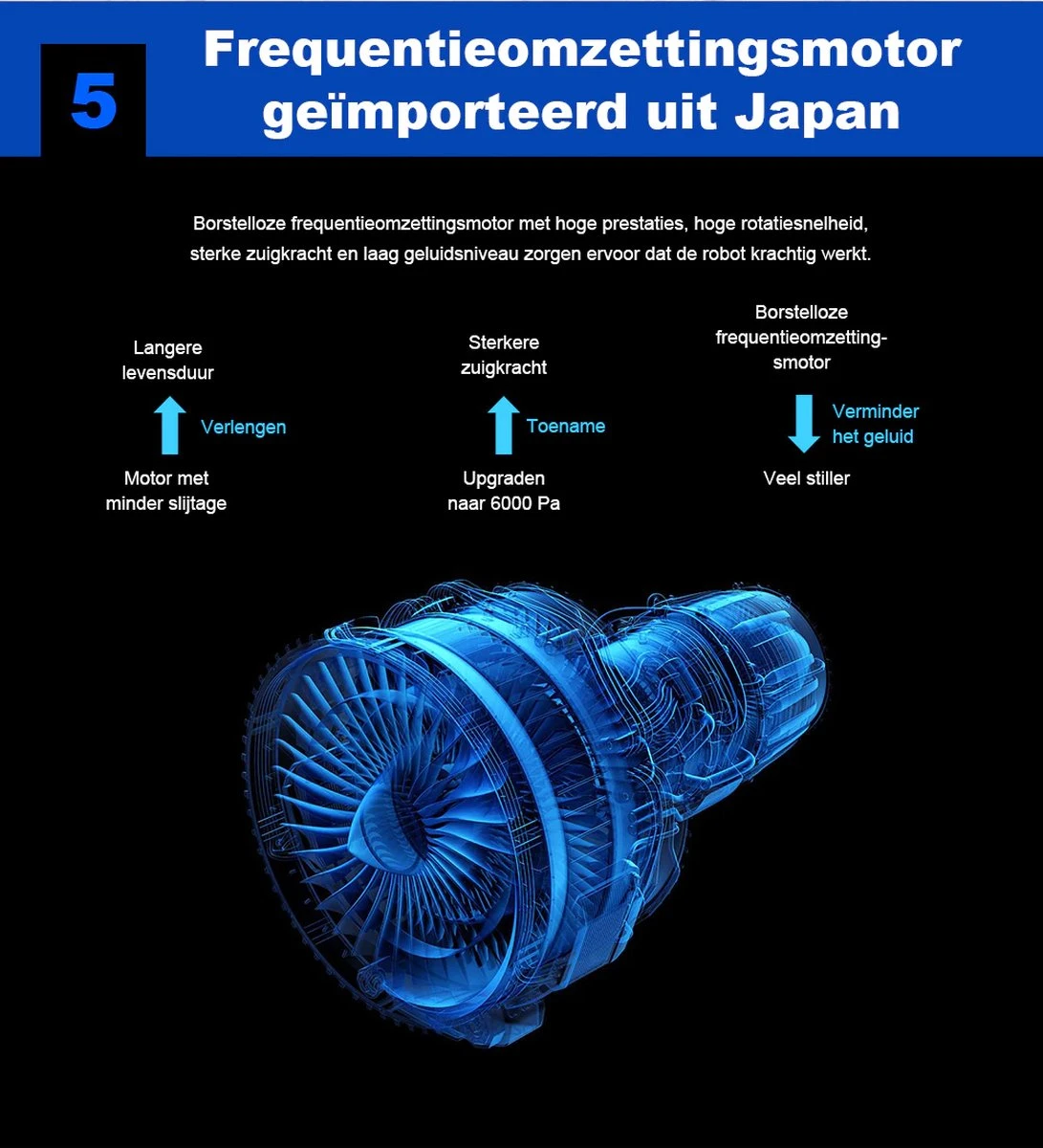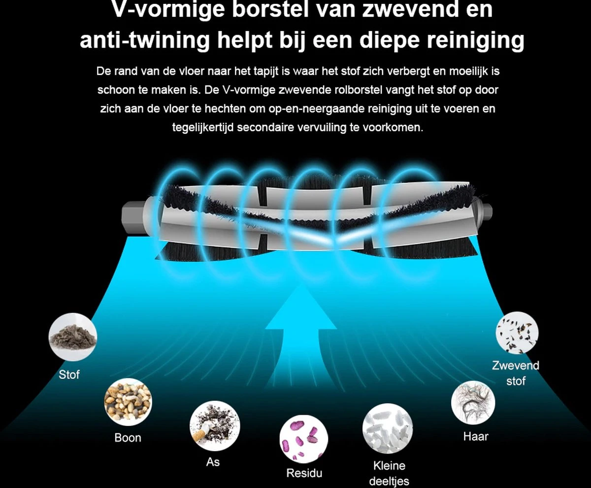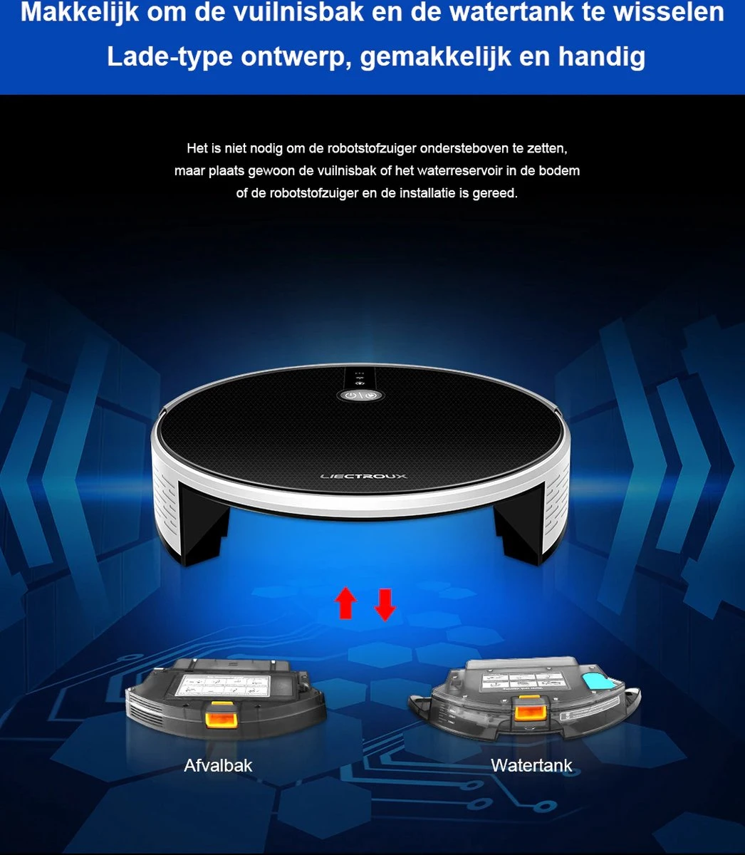 Le robot aspirateur et robot laveur électrique est l’un des plus performants de 2022 avec son caractère innovant. Grâce au radar laser intelligent Smart 360° avec technologie LDS et SLAM, ce robot nettoie très précisément. Via la carte que le robot crée en temps réel, des zones NO-GO peuvent être créées immédiatement dans l’application conviviale et le robot évitera parfaitement les objets. Grâce au système de triple filtre HEPA, ce robot est également idéal pour les personnes allergiques. La puissance d’aspiration élevée avec capteur de tapis et turbo boost, brosses doubles latérales et brosse centrale ne laisse aucune chance aux poils d’animaux. Avec une batterie lithium-ion super puissante de 2500 mAH, le nettoyage peut être effectué jusqu’à 1h30 à 2h00 et si cela ne suffit pas, le robot se recharge et continue là où il s’est arrêté.