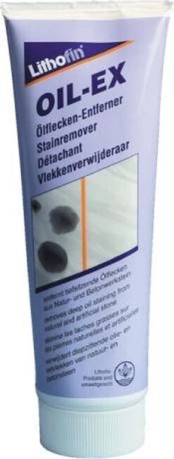 Le Lithofin OIL-EX convient pour éliminer les taches d’huile et les contaminants similaires de la pierre naturelle, de la pierre de béton, de la chape de ciment et d’autres surfaces absorbantes. Idéal pour les plans de travail de cuisine, mais aussi pour les entrées de garage, les sols et autres surfaces. Lithofin OIL-EX est une pâte de type gel prête à l’emploi, qui consiste en un mélange de solvants et de solides hautement absorbants.