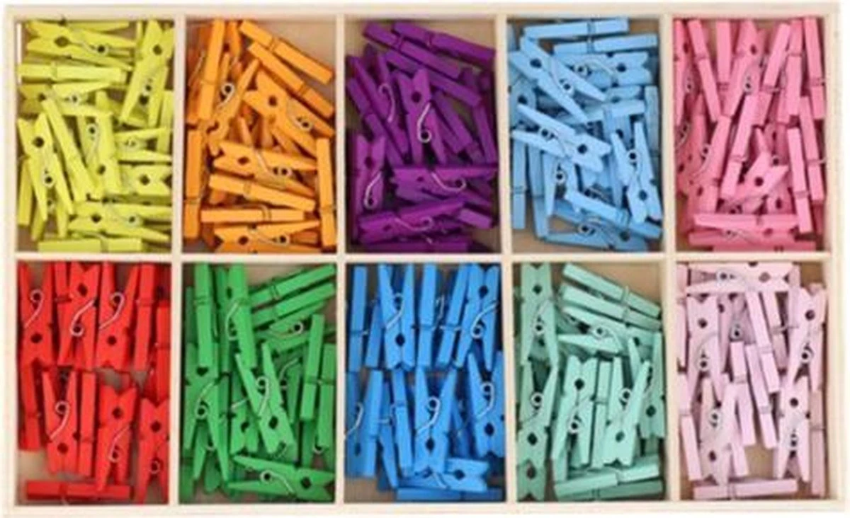 Mini pinces à Épingles à linge bois – Petites pinces à linge – Pinces à Épingles à linge mini – 200 pièces – 10 couleurs