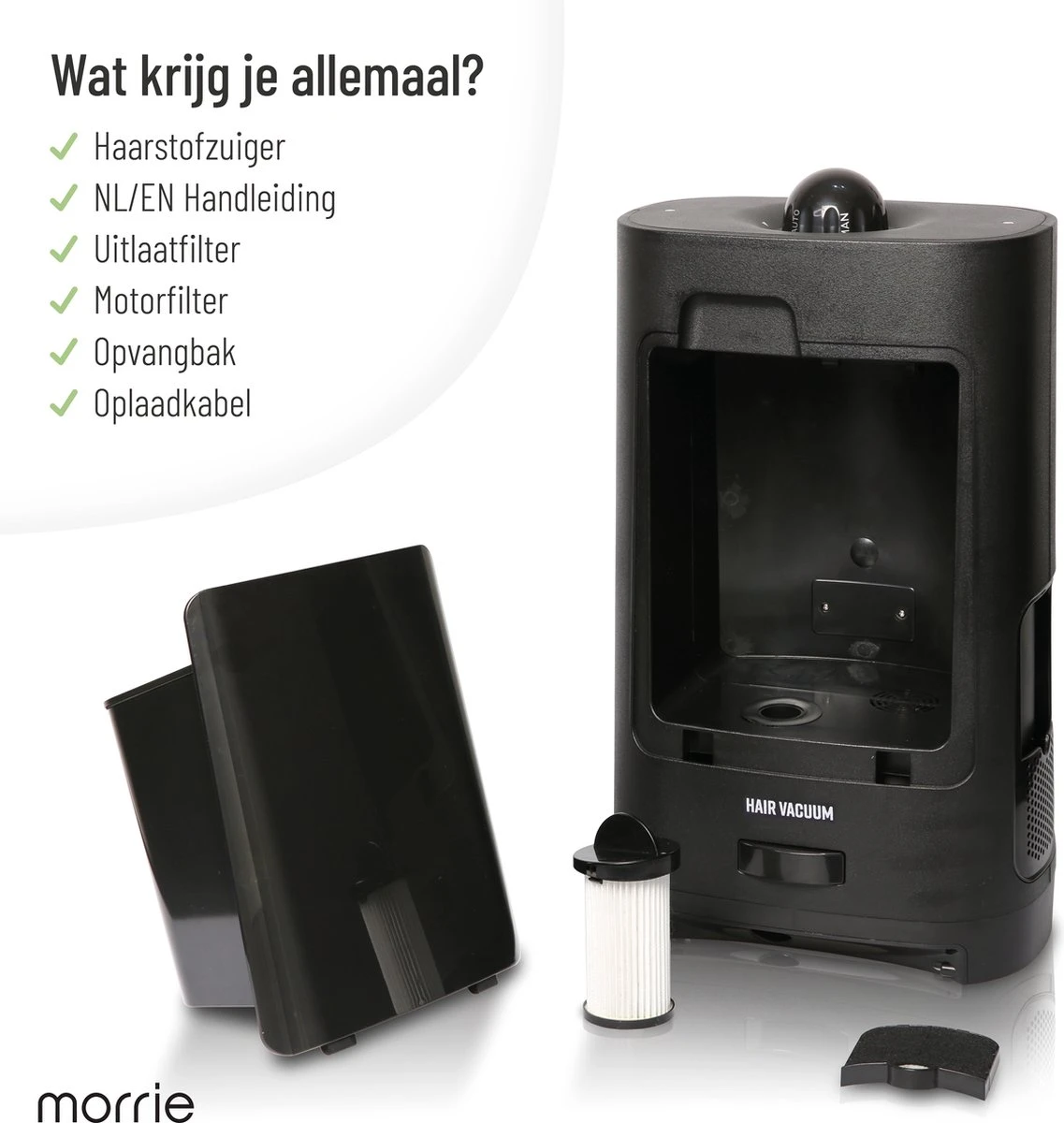 Votre assistant intelligent pour rendre votre travail plus confortable et productif. Vous n’avez plus besoin de sortir un aspirateur du placard et de le brancher. L’utilisation d’une pelle à poussière et d’une pelle à poussière appartient également au passé. Faites fonctionner le moteur de la poubelle et balayez les cheveux, animaux de compagnie ou autres débris de votre client au fond de l’aspirateur à cheveux Morrie. Facile, rapide, hygiénique et efficace. Il est aussi très beau dans l’espace