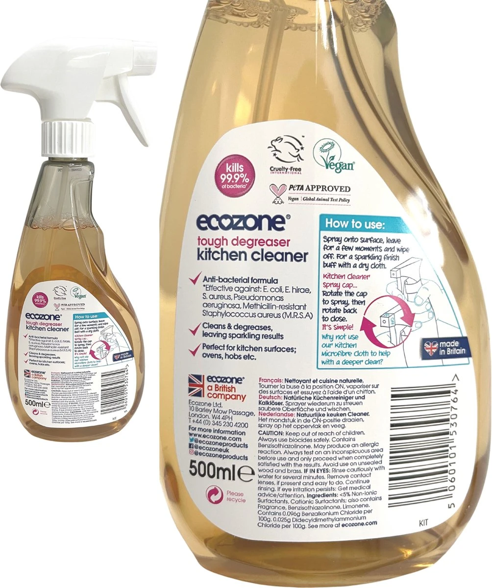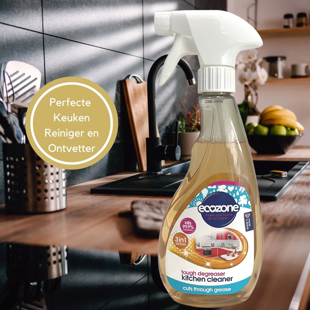 Le nettoyant et dégraissant pour cuisine Ecozone 3 en 1 élimine la graisse et la saleté et fait briller votre cuisine.