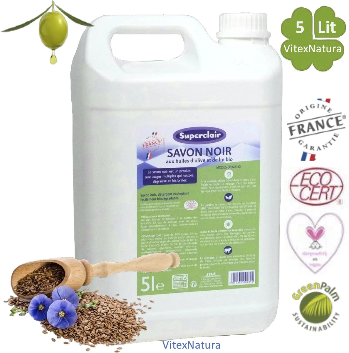 - Savon noir de ménage 5 L Savon noir à l’huile de lin et à l’huile d’olive. Bouteille de recharge pratique.